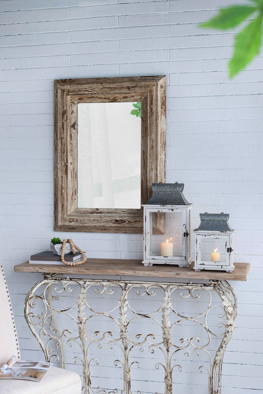 Wooden Accent Mirror With Unique Frame, Wall Mirror For Living Room Bedroom Entryway - Brown