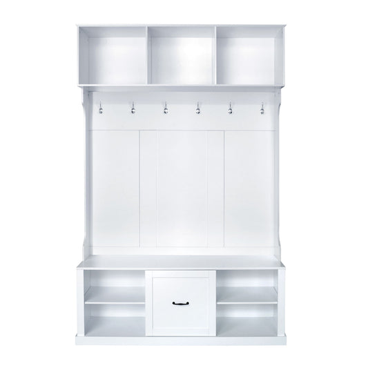 Hall Tree With Shoe Bench For Entryway With 9 Removable Hooks