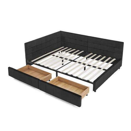 Modern Cushioned Bed Frame With Headboard And Drawers