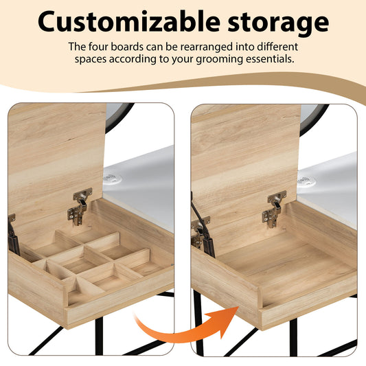 Elegant Makeup Vanity Desk With Adjustable Lighted Mirror Table Feet - American White Oak