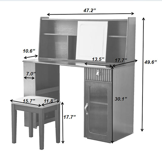 Modern Elegance Makeup Vanity Desk With Adjustable Lighted Mirror Storage Shelves Drawer And Cabinet - Walnut