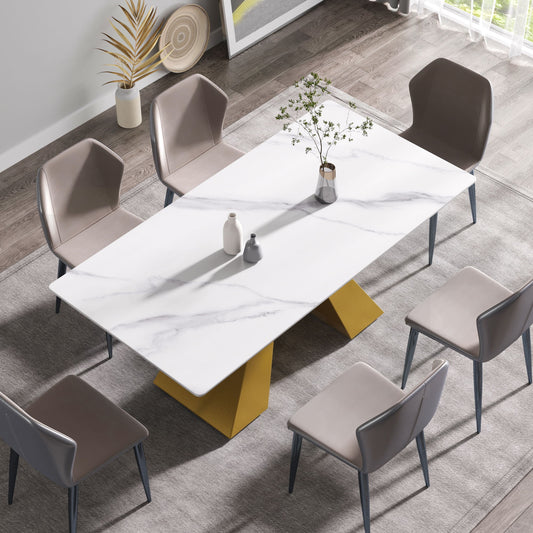 70.87" Modern Artificial Stone Straight Edge Golden Metal Leg Dining Table, Can Accommodate 6-8 People - White / Gold