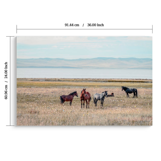 Horse Framed Wall Art Decor For Living Room - Denim / Brown
