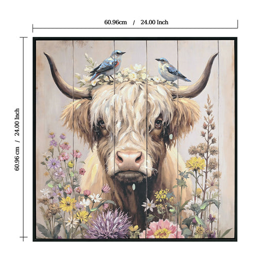 Highland Cow Wall Decor, Picture Canvas Art Print For Living Room - Camel / Brown