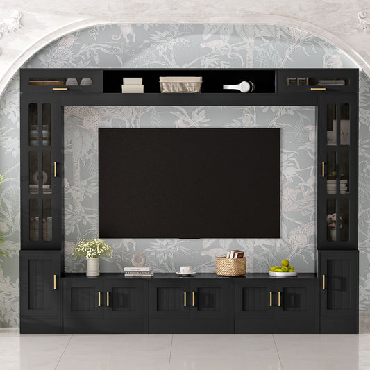 Wall Unit Entertainment Center With Bookshelves For TVs Up To 80" - Black