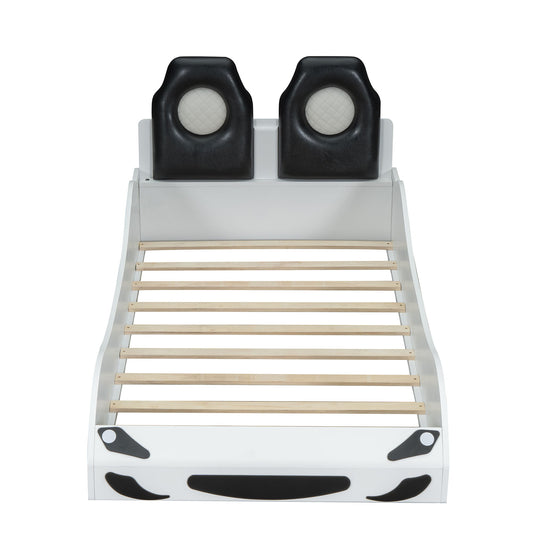 Race Car Shaped Platform Bed With LED And Upholstered Backrest In