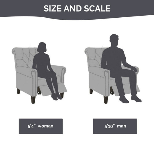 Upholstered Push Recliner Chair With Rubber Wood Legs For Living Room