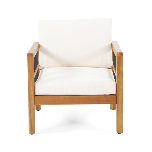 Outdoor Acacia Wood Patio Club Chair, Wood Patio Furniture, Waterproof Thick Cushion Deep Seating For Porch - Brown Wash / Beige