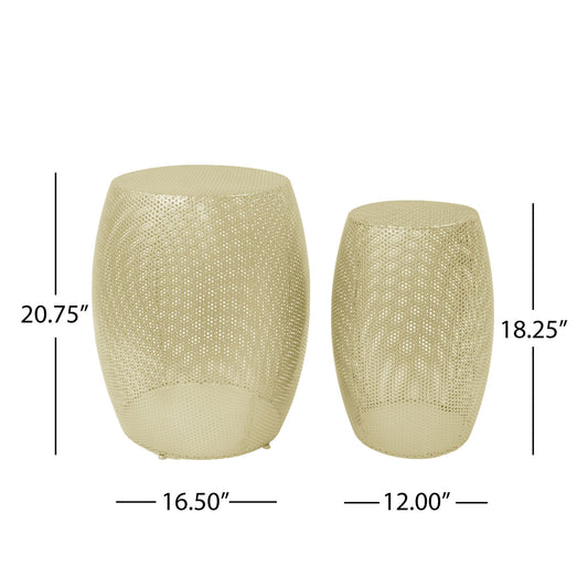 Modern Round Metal Hollow Side Table Set With Openwork Design - Gold