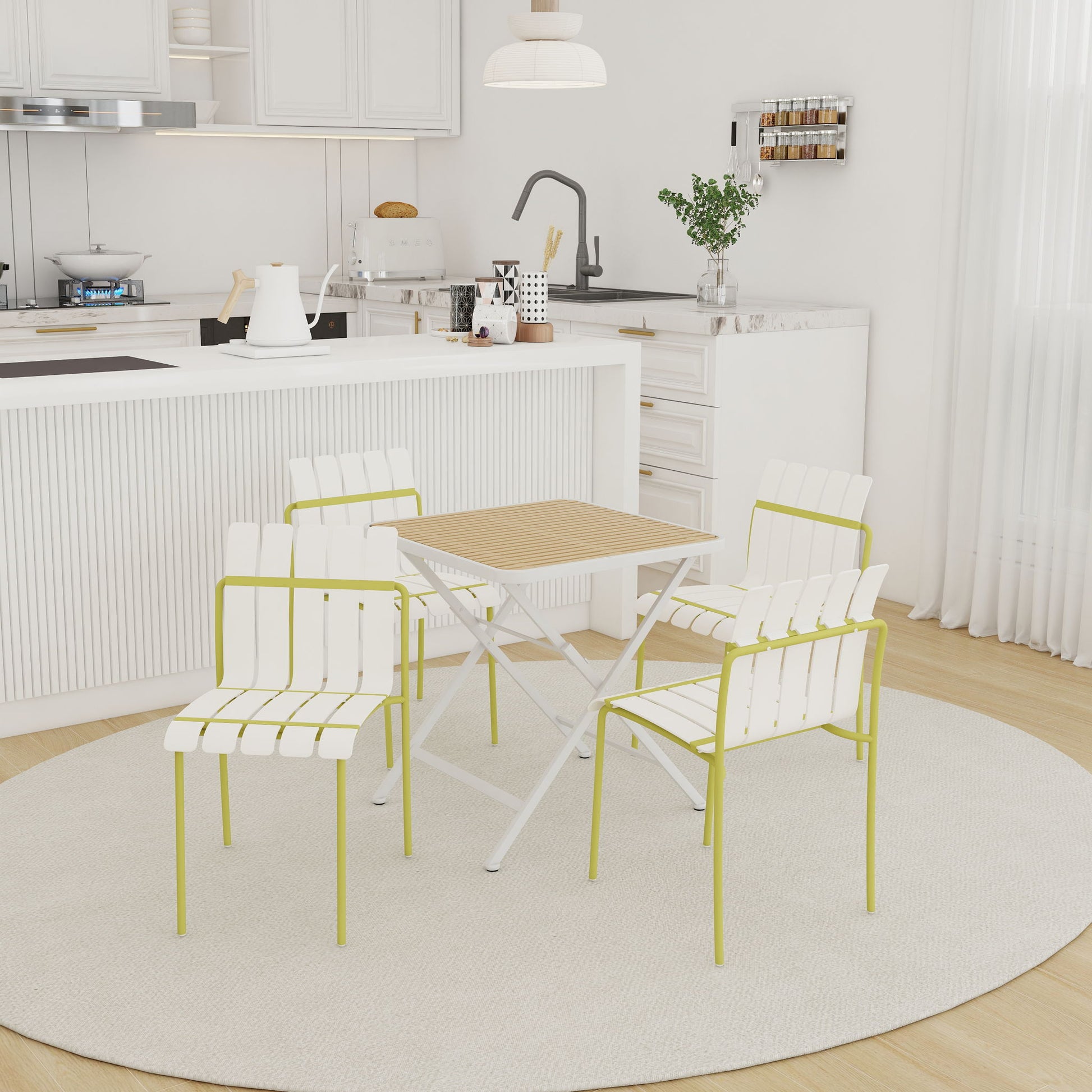 4 Piece Set Of Modern Color Block Designed Single Chairs With Folding Square Table