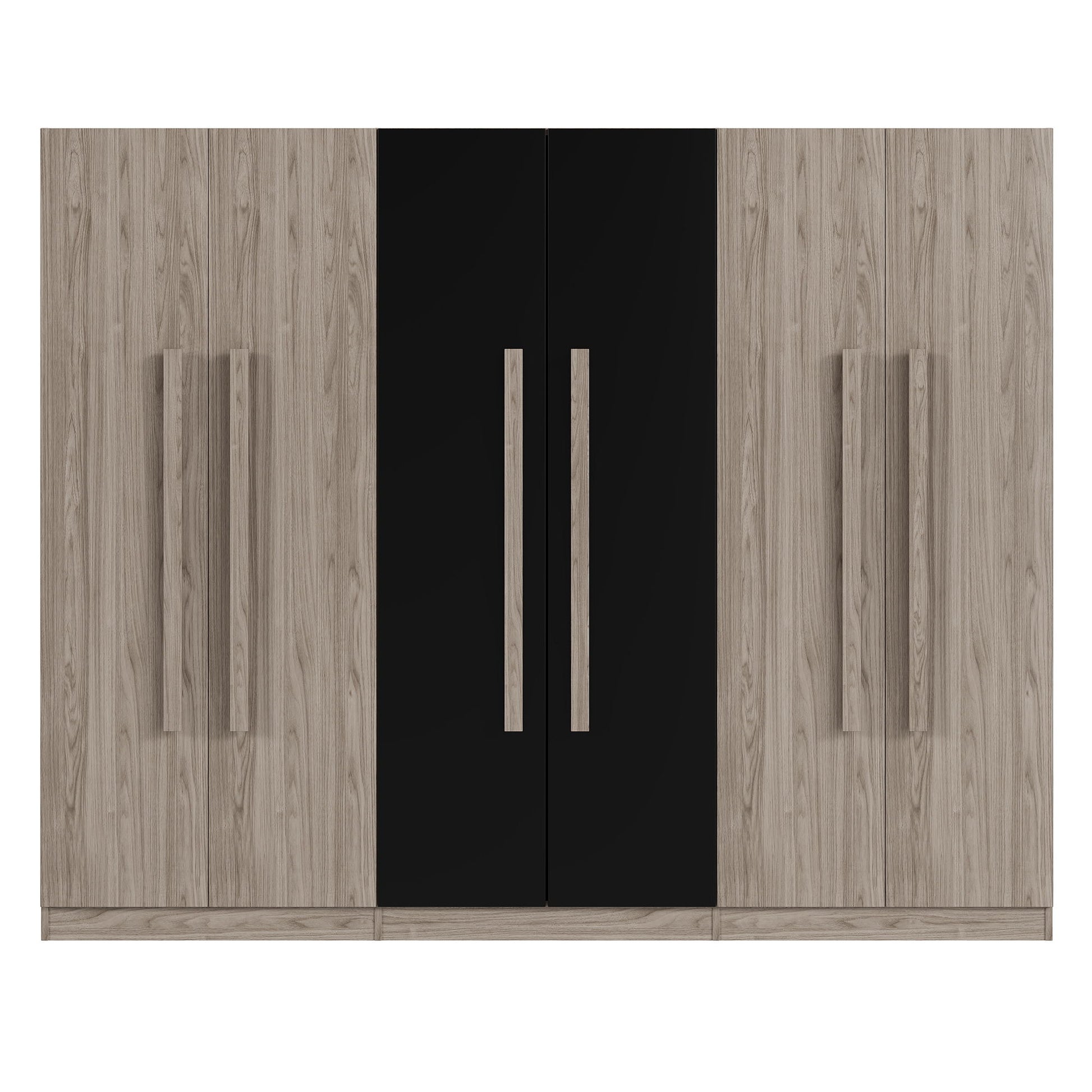 6 Doors Wardrobe Storage For Bedroom, With 2 Drawers Inside - Black / Nature