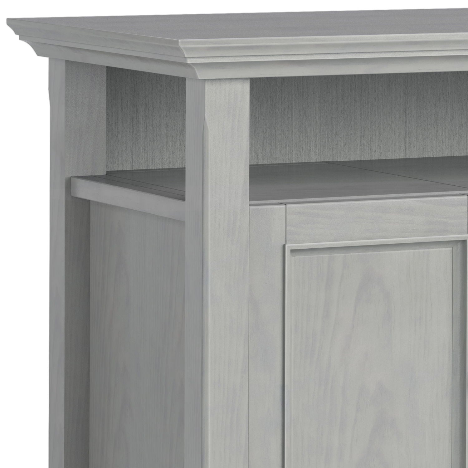 - Features two (2) side doors open to storage areas with two adjustable shelves and a central area with two (2) adjustable shelves and a top open shelf for your media devices.