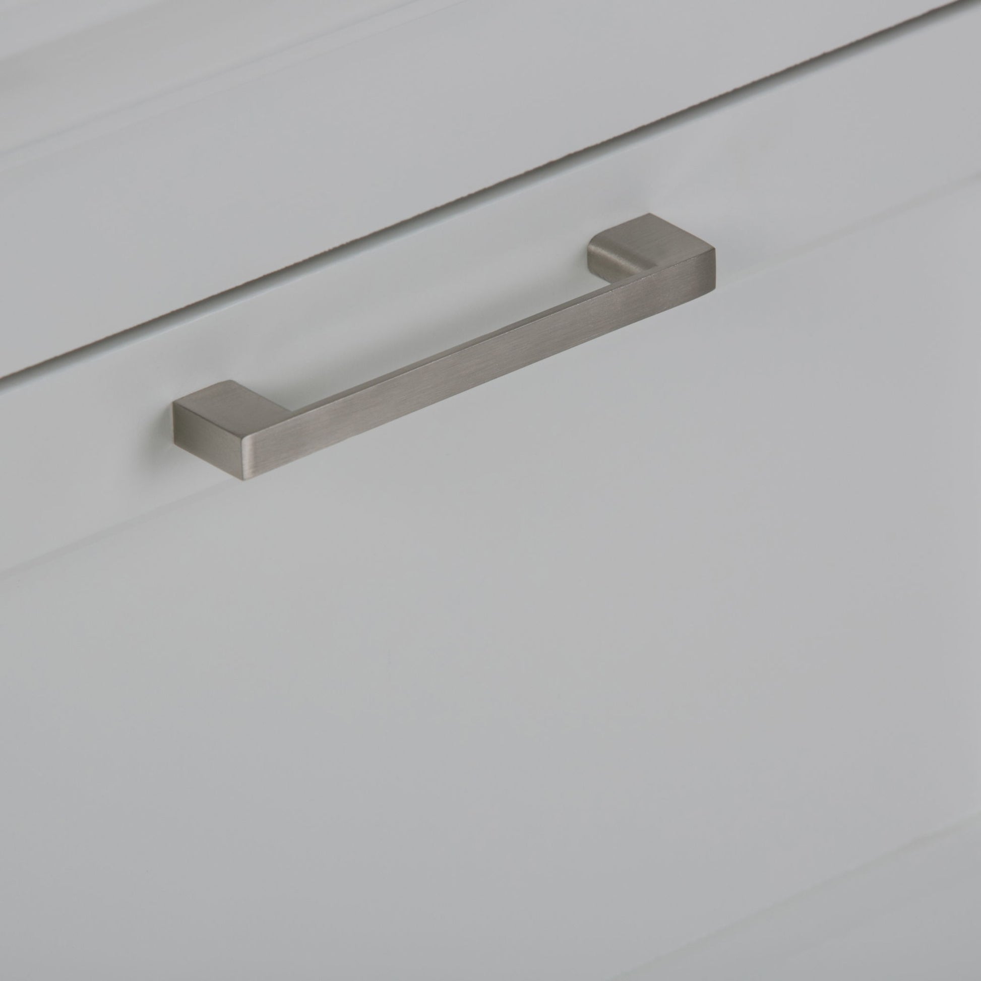 - Features one (1) pull open door. Contemporary Brushed Nickel handle