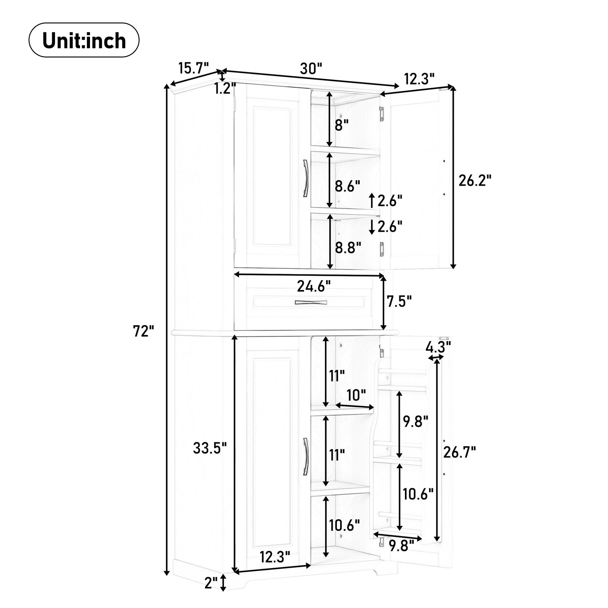 30.0"W x 15.7"D x 72.0"H - 114.7 lb
