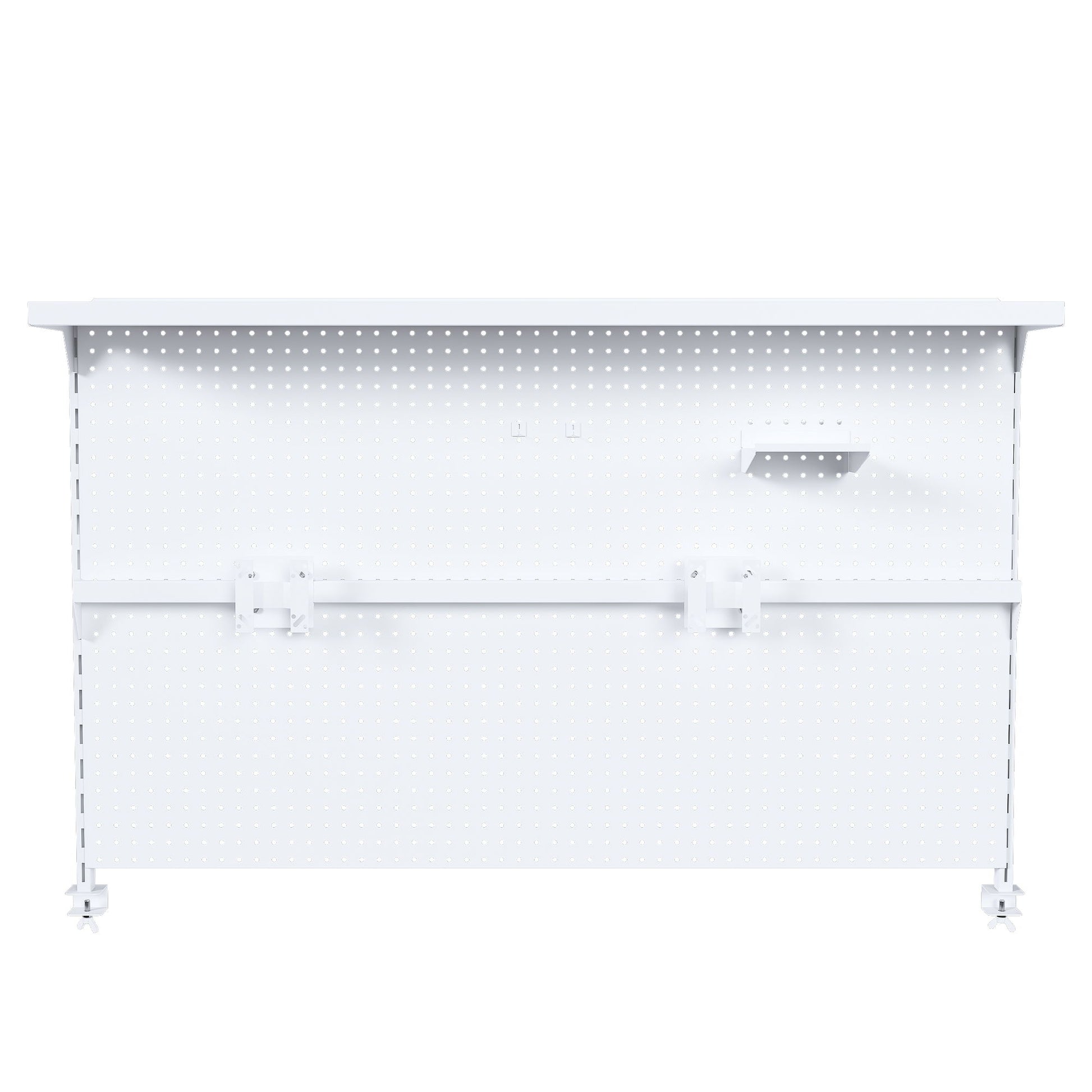 Clamp On Desk Pegboard With Single Monitor Stand, Organizer With Hooks & Movable Panel - White