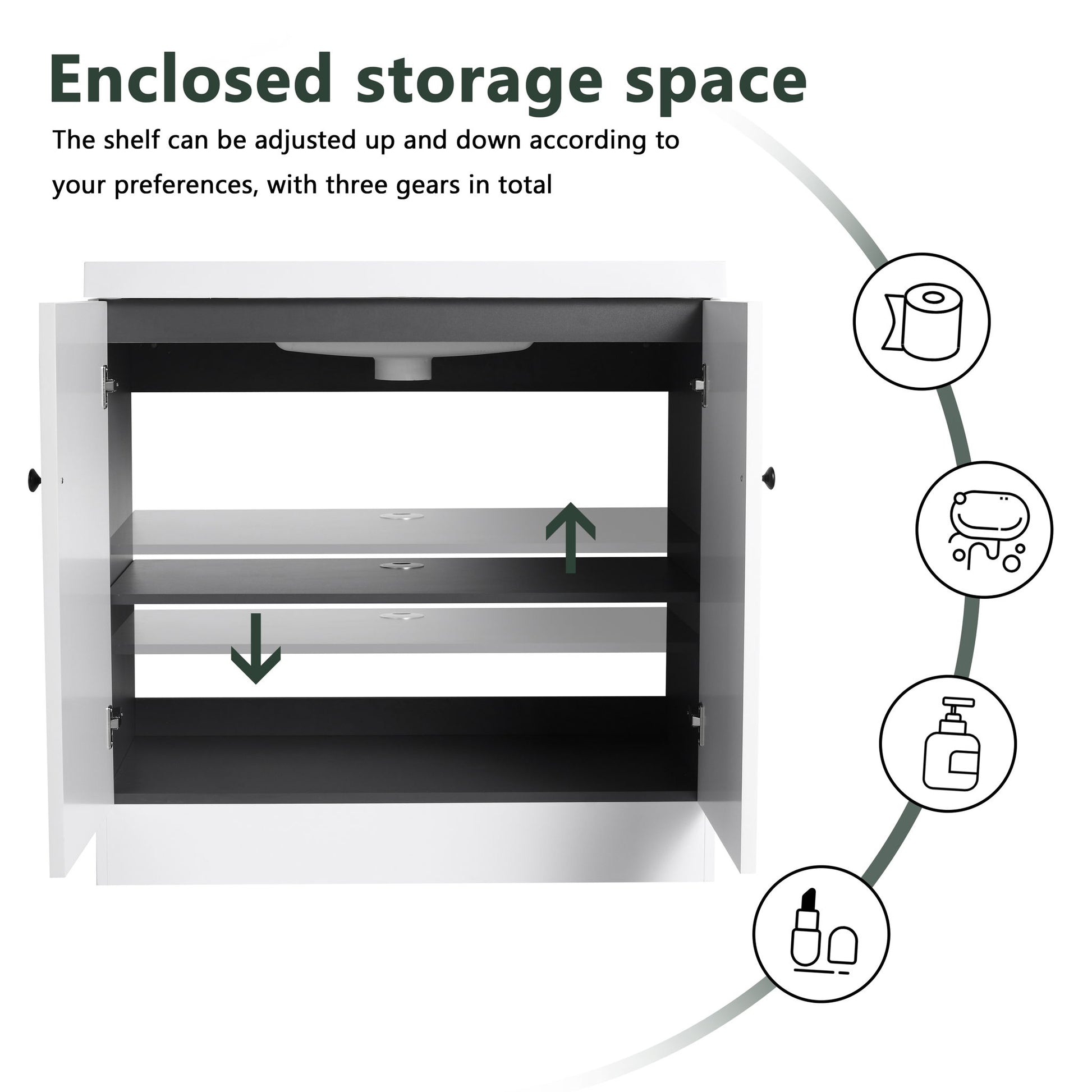 Modern Freestanding Bathroom Vanity With Resin Sink & Soft Close Cabinet Doors, Durable - White