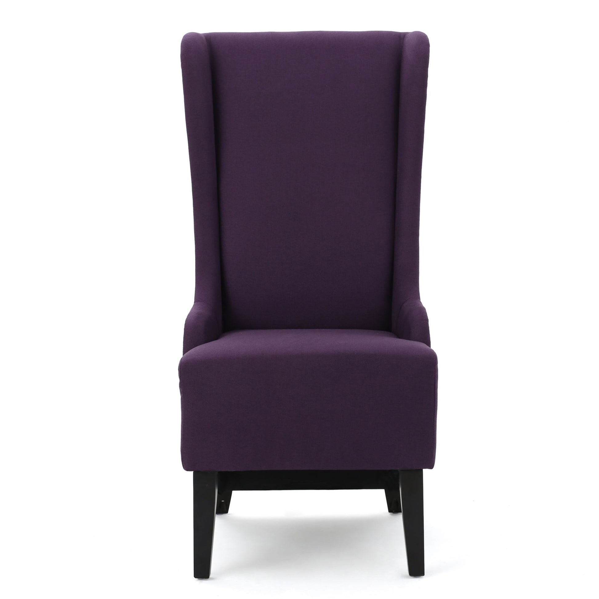 Fabric Dining Chair With High Back And Birch Wood Legs - Plum