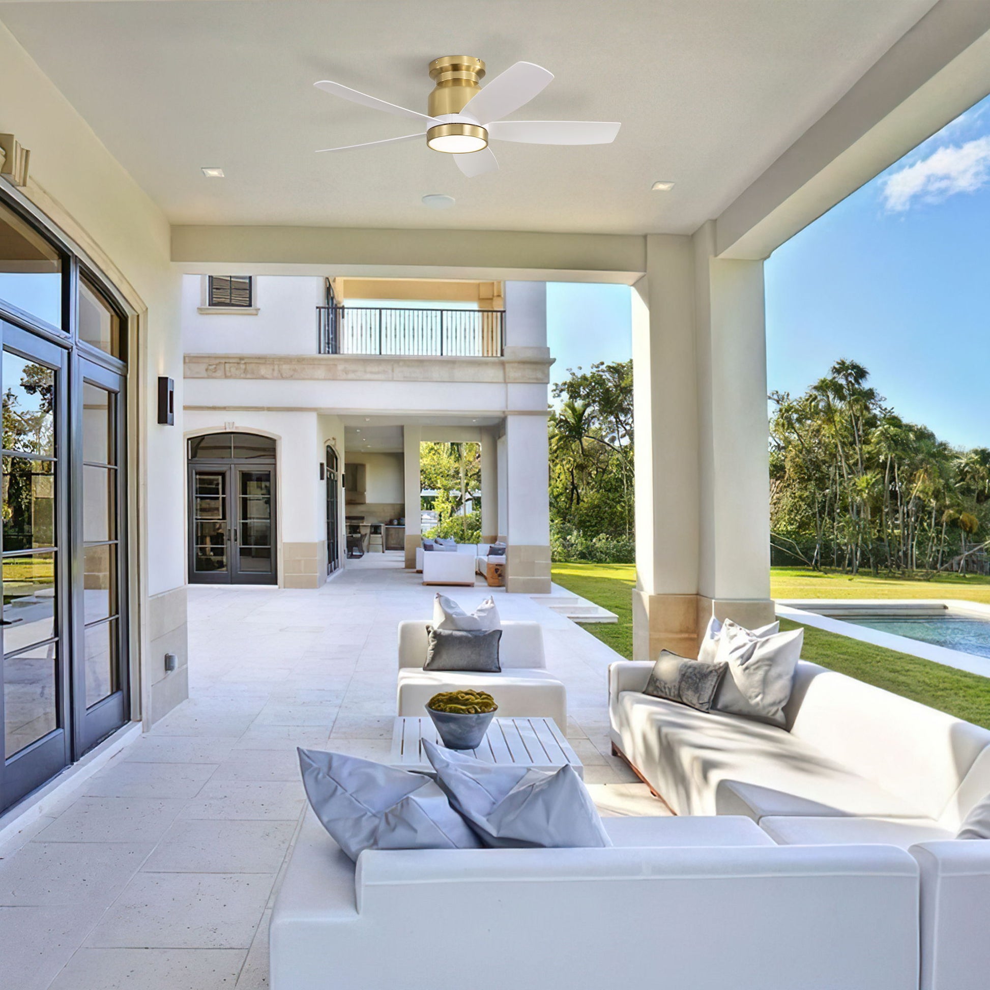 Flush Mount Ceiling Fan & LED Light 22W And Remote Control Blades For Indoor Use - Gold