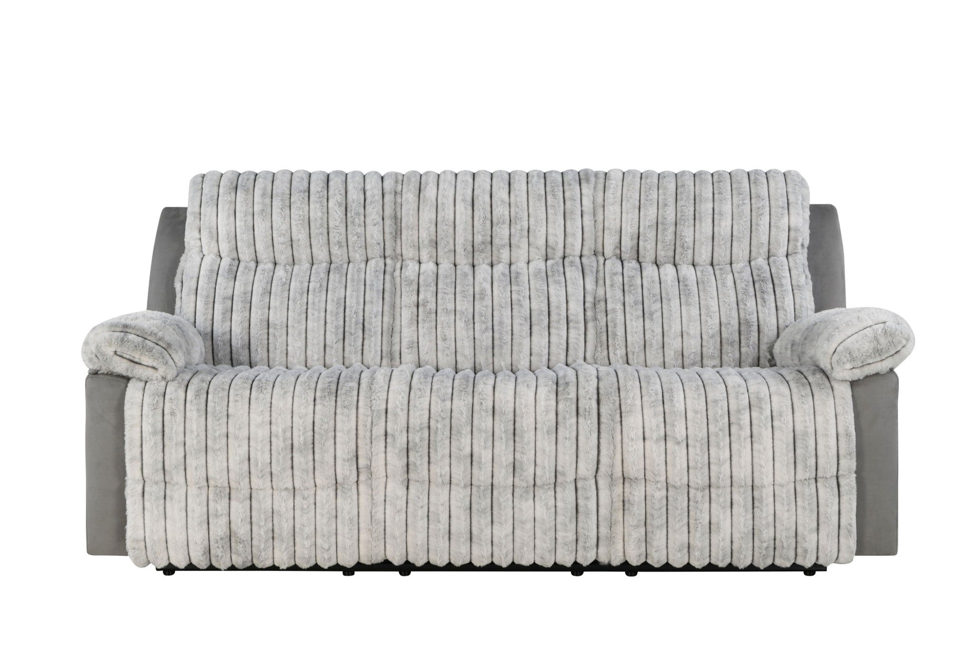 GLOBAL Reclining Sofa with Pillow Top Arms, Pillow Backing, Ribbed Fabric, Pull Tab Reclining Mechanism, Two Tone Look, Color: Grey