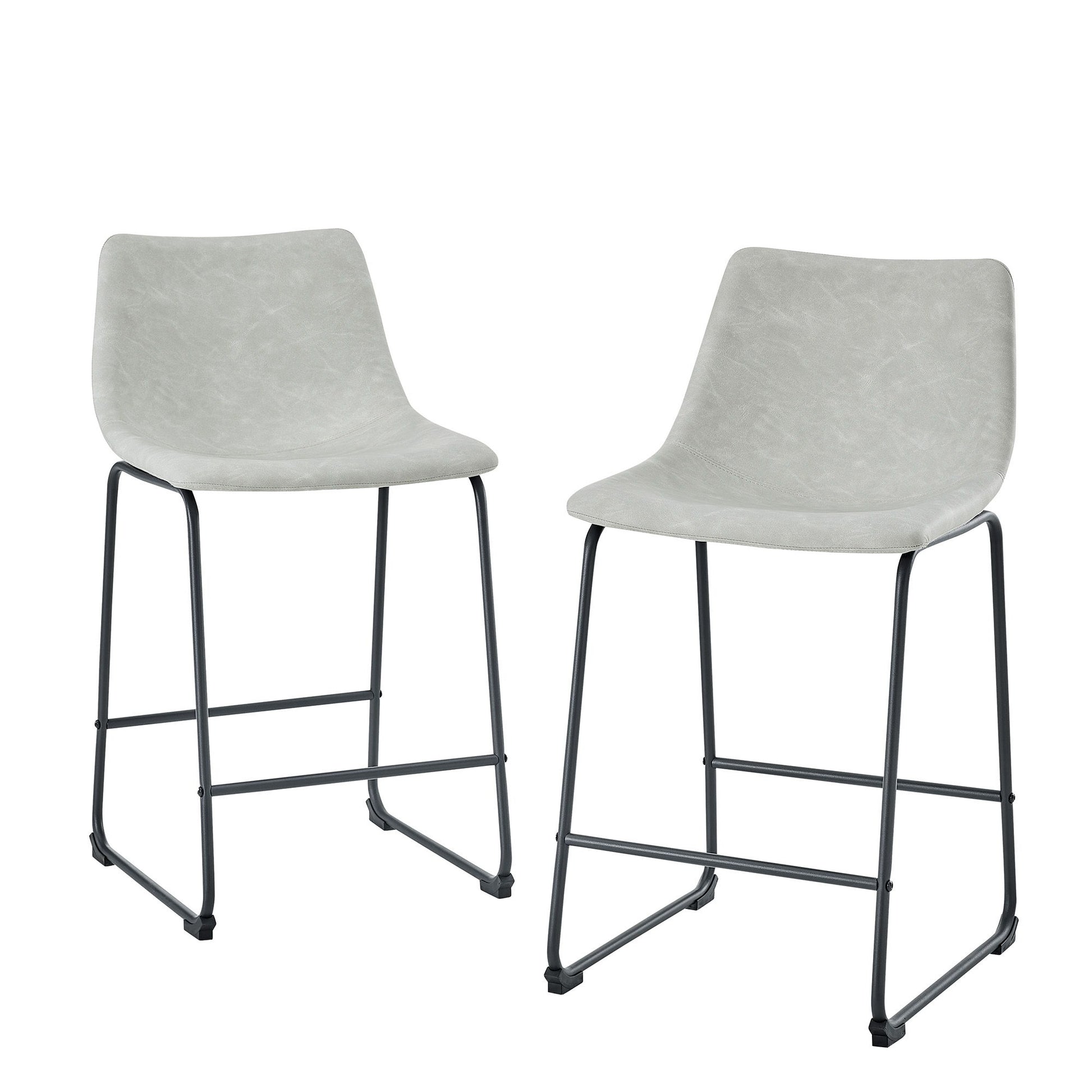 Industrial Faux Leather Counter Stools (Set of 2) - Gray