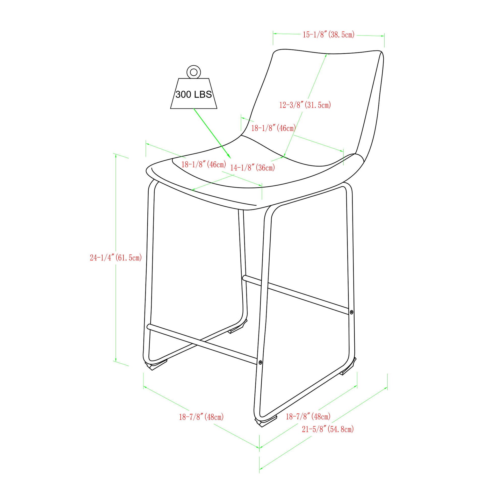 Industrial Faux Leather Counter Stools (Set of 2) - Black