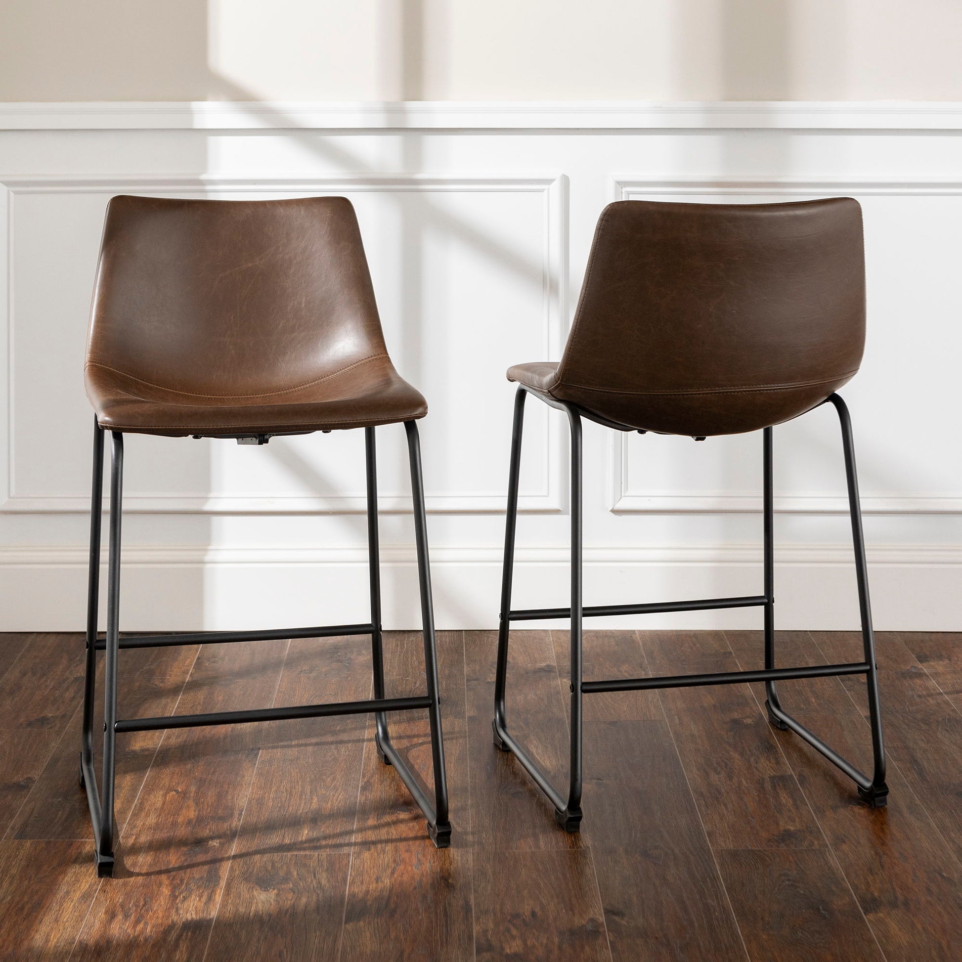 Industrial Faux Leather Counter Stools (Set of 2) - Whiskey Brown