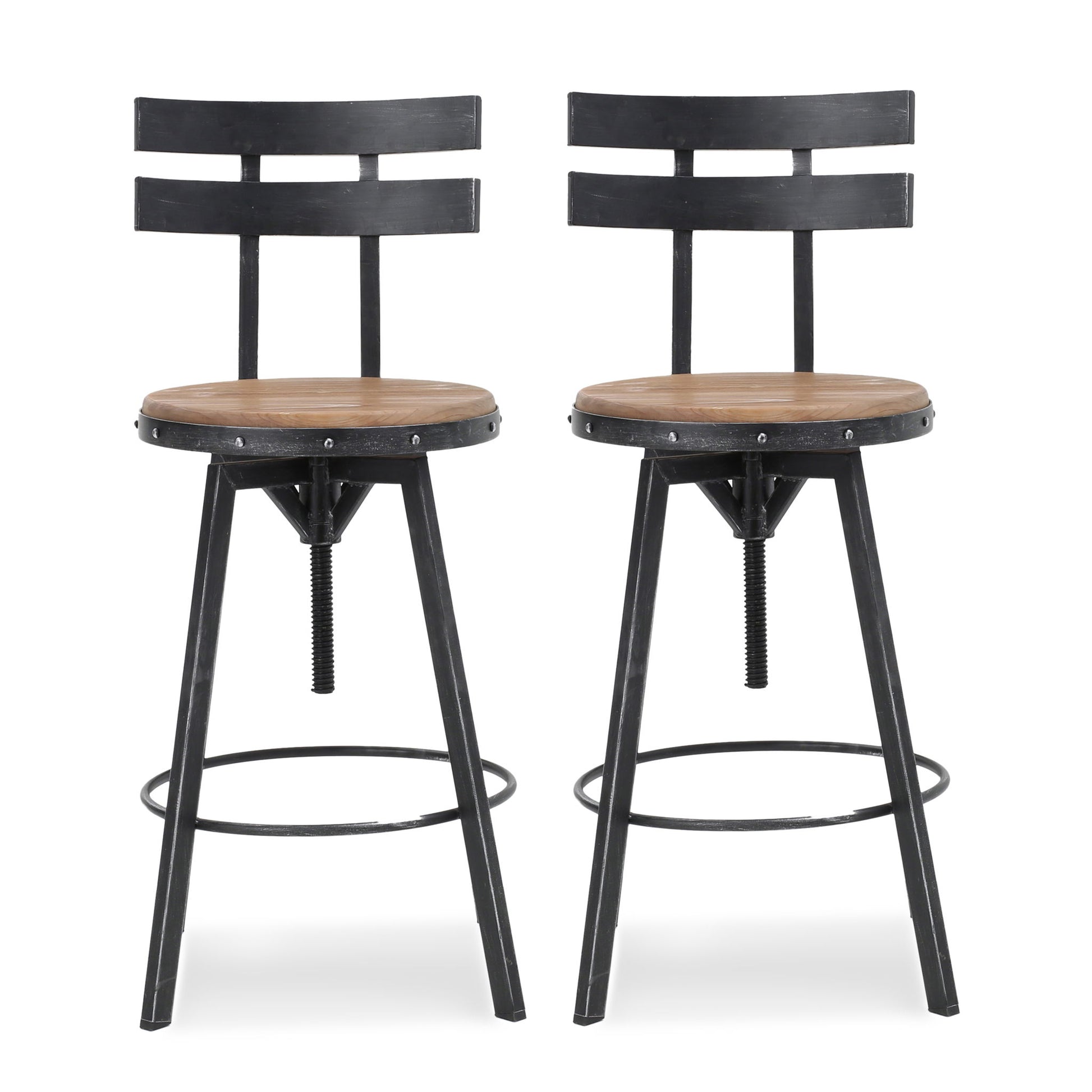 Industrial Modern Swivel Barstool With Adjustable Height - Black / Natural