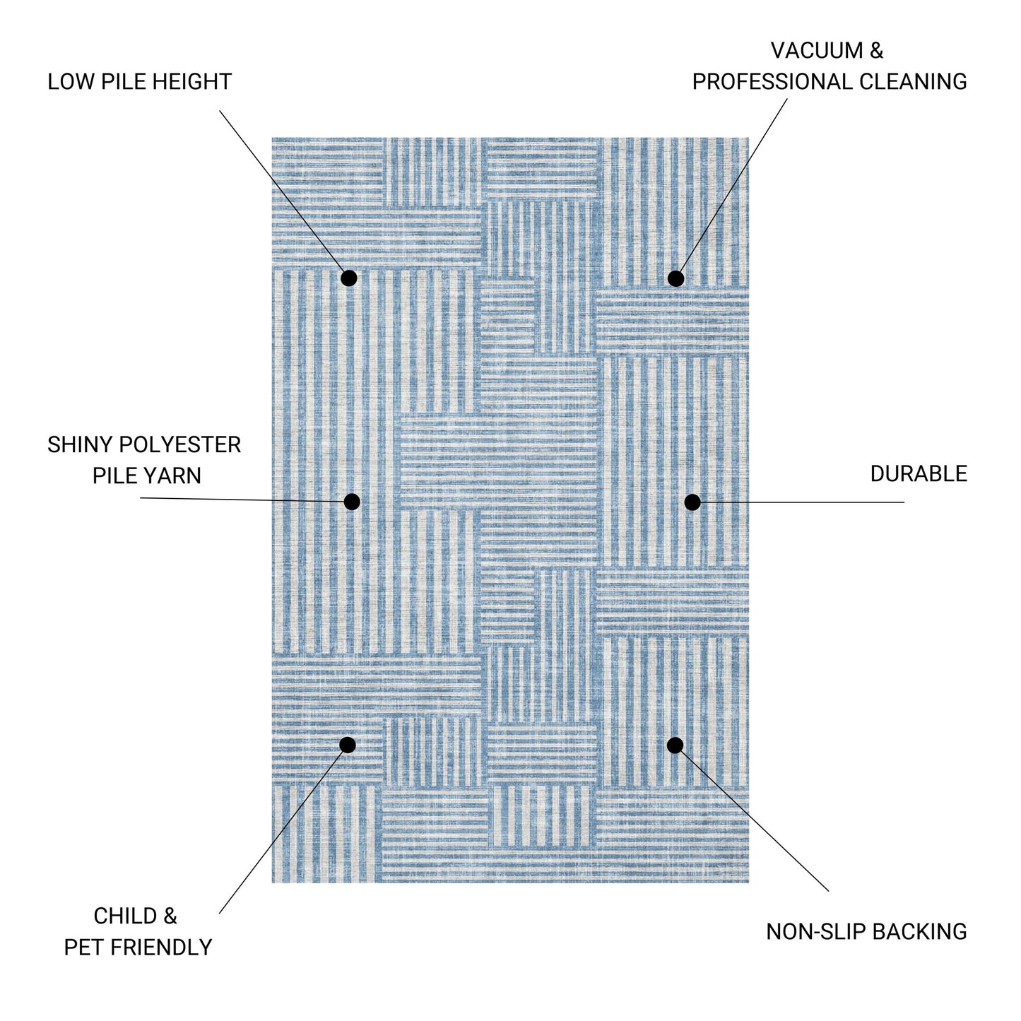 - Care Instructions: Vacuum regularly and opt for professional cleaning to maintain the rug's appearance. Note that the low pile allows for easy placement under furniture and will not obstruct doorways.