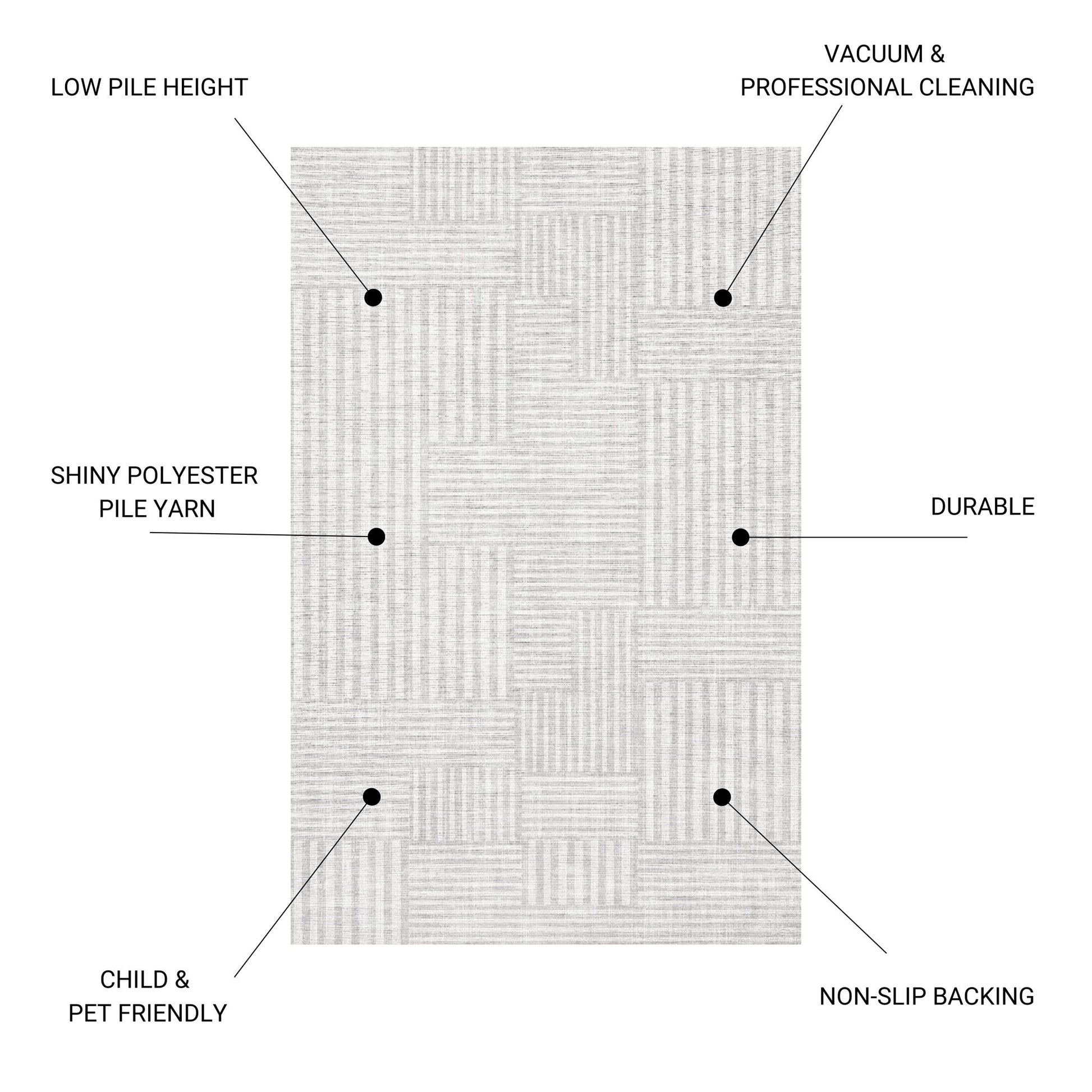 Macau - Non - Slip Runner Rug - White / Gray