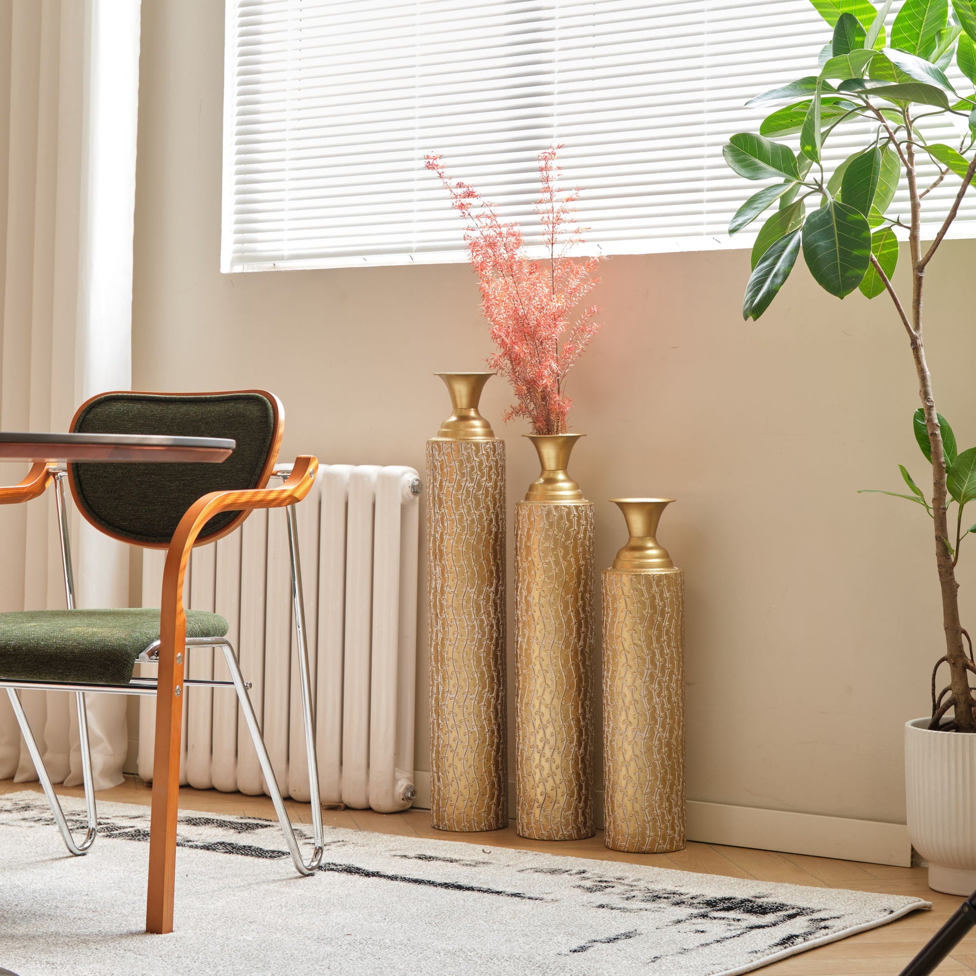 Metal Decorative Vases High Distress Metal Center Vases With Growing Vine Patterns, (Set of 3) Vases For Home Decoration - Gold