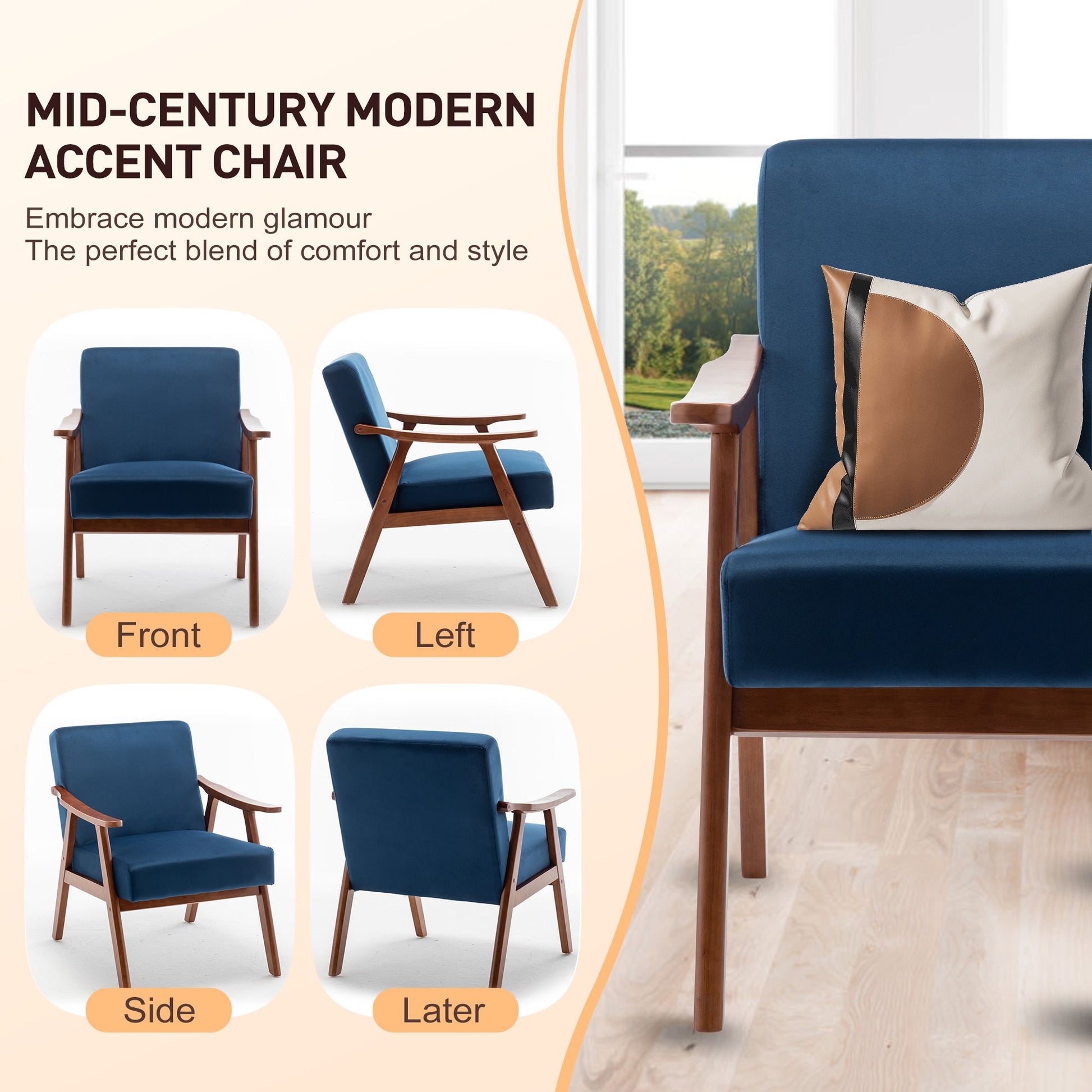 Mid Century Modern Accent Chair With Solid Wood Frame And Extra Thick Backrest
