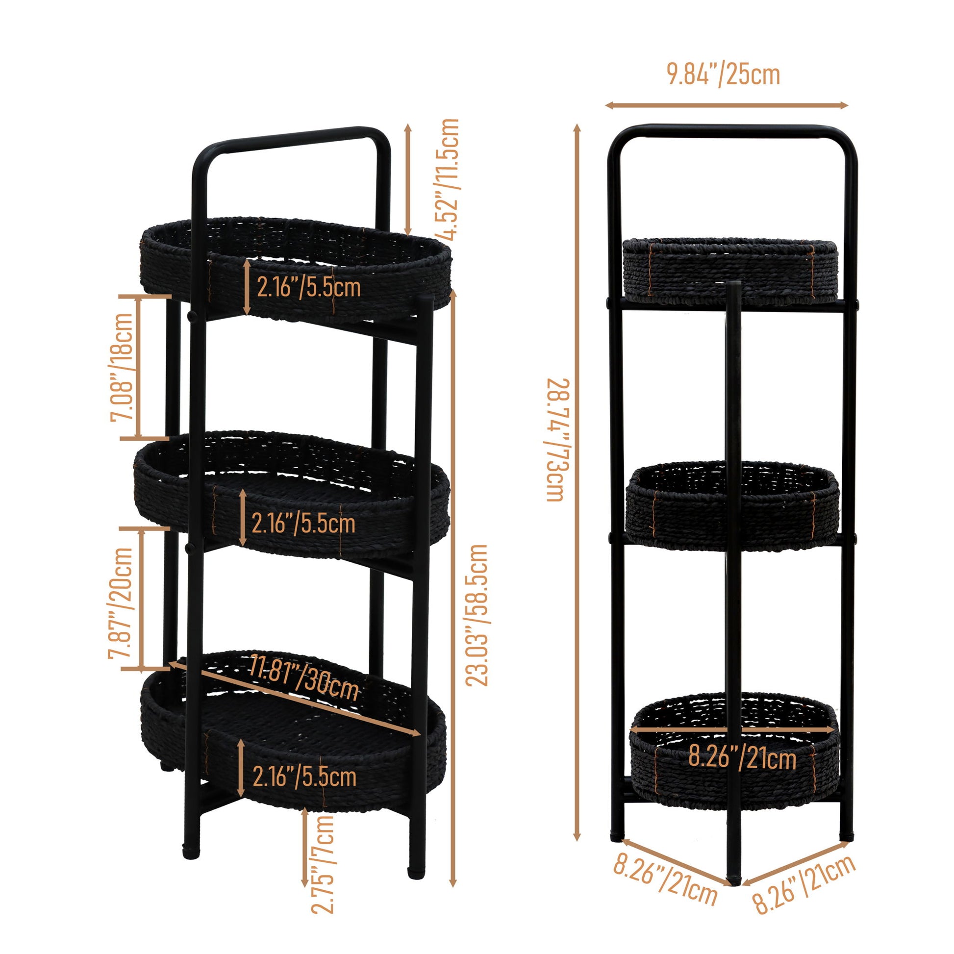 Modern 3 Tier Handwoven Side Table With Oval Organizer In Metal And Paper Rope - Black
