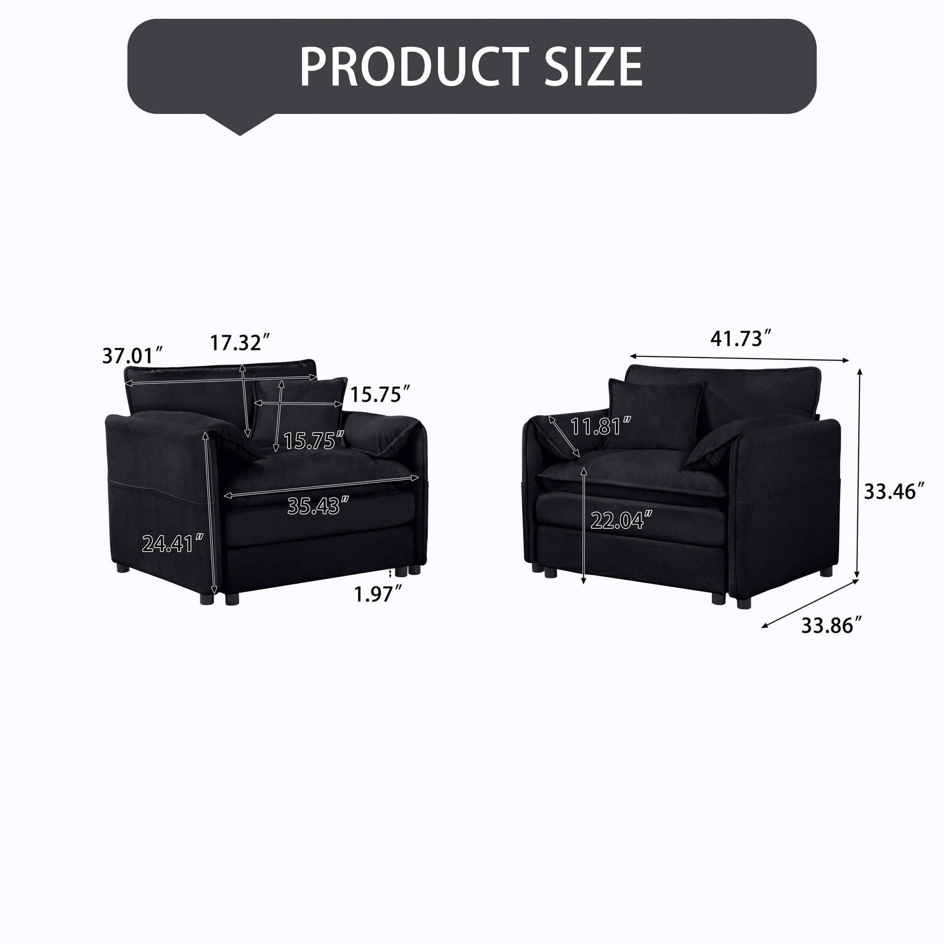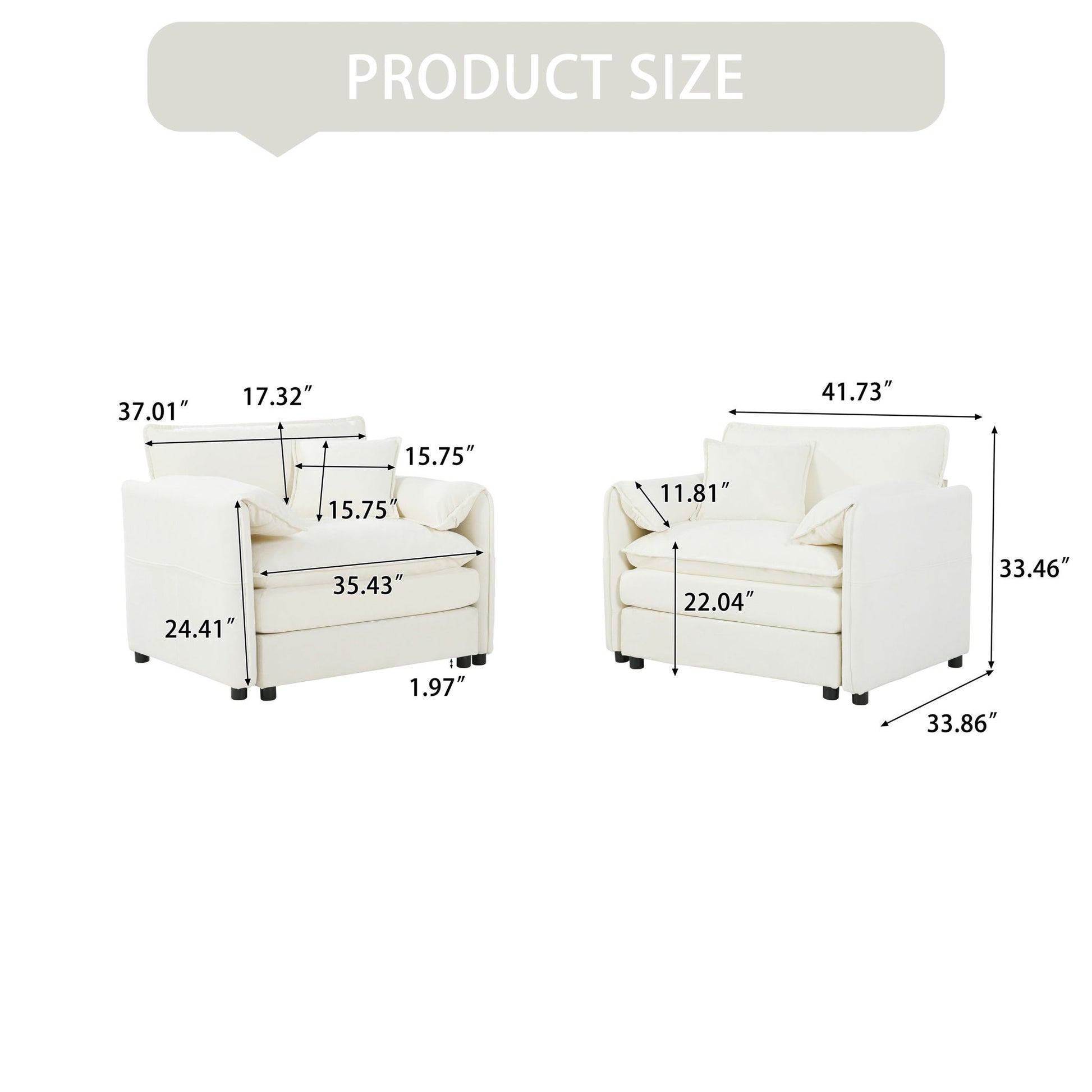 Modern Chenille Oversized Accent Chair, Comfy Single Sofa With Large Seat (Set of 2)