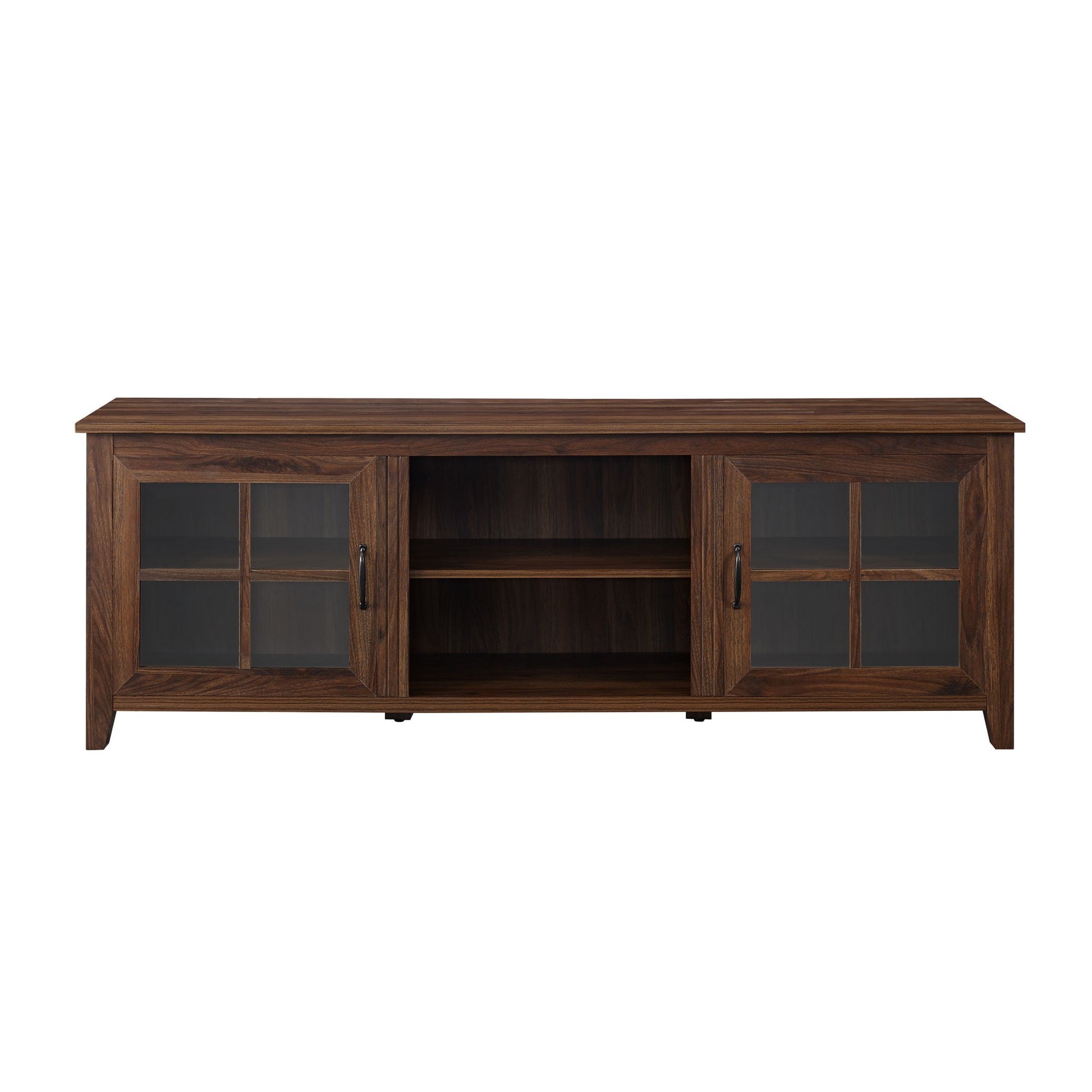 Modern Farmhouse 2 Door Glass Windowpane 70" TV Stand For 80" TVs - Dark Walnut