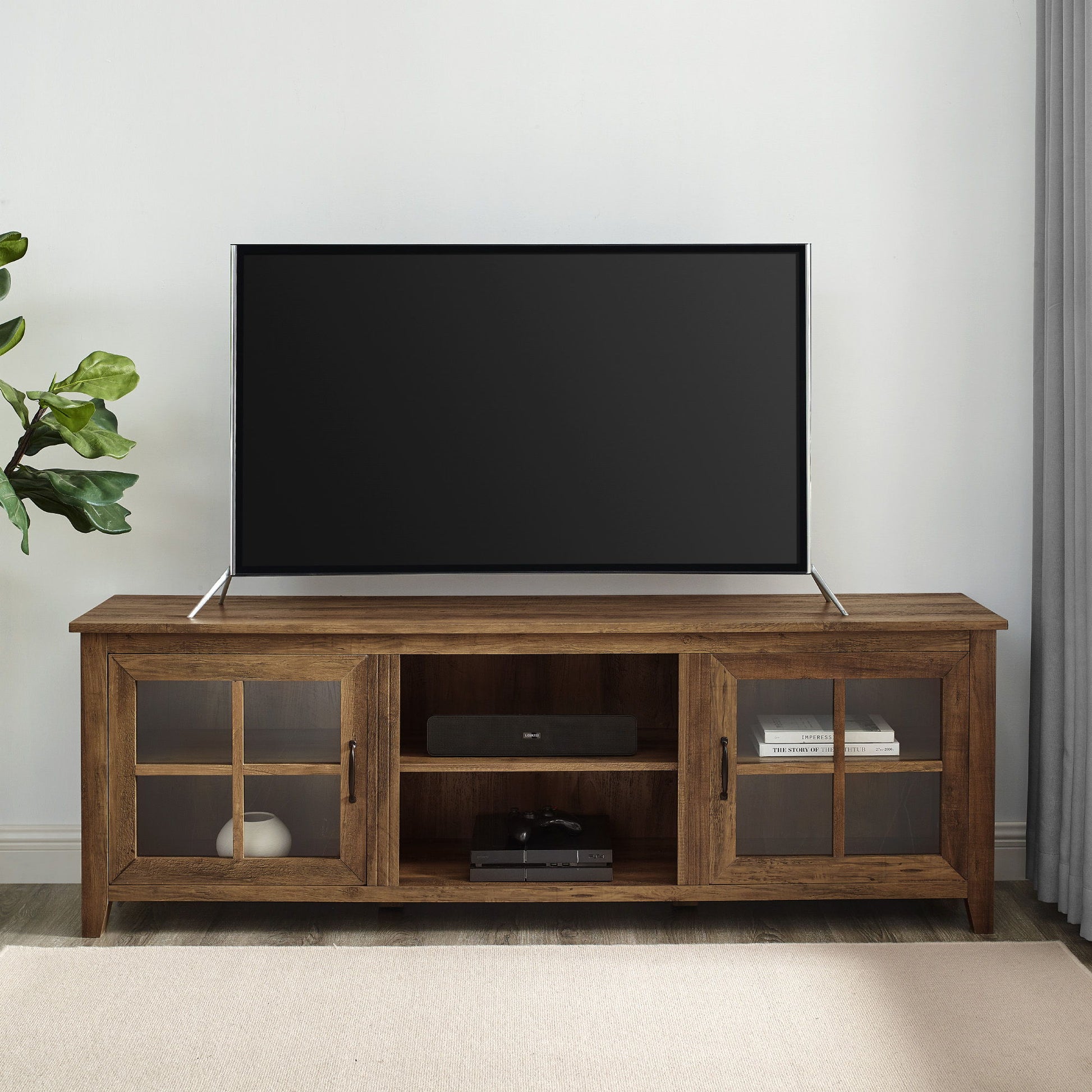 Modern Farmhouse 2 Door Glass Windowpane 70" TV Stand For 80" TVs - Rustic Oak