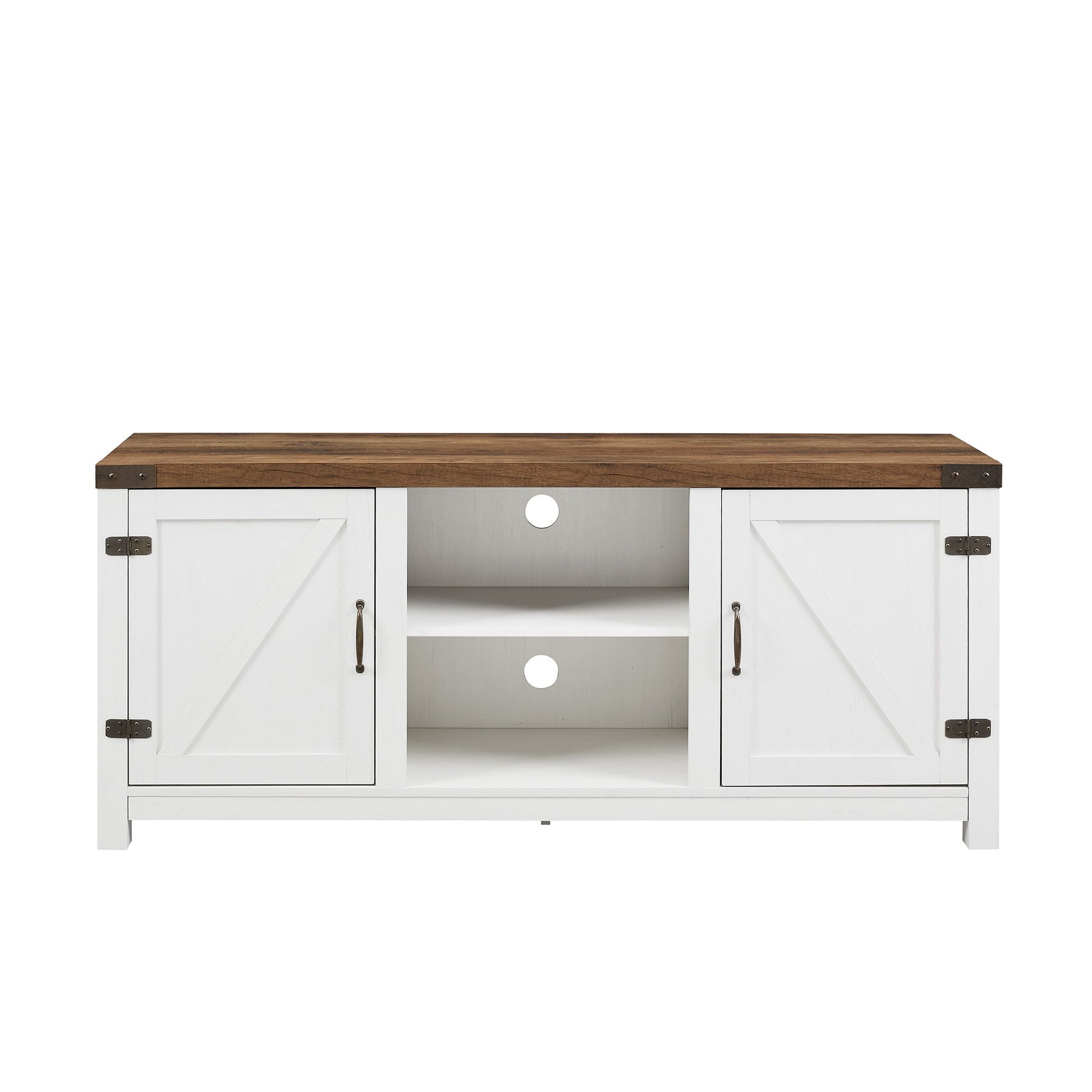 Modern Farmhouse Barn Door 3 Shelf TV Stand For TVs Up To 65” - Rustic Oak / Brushed White