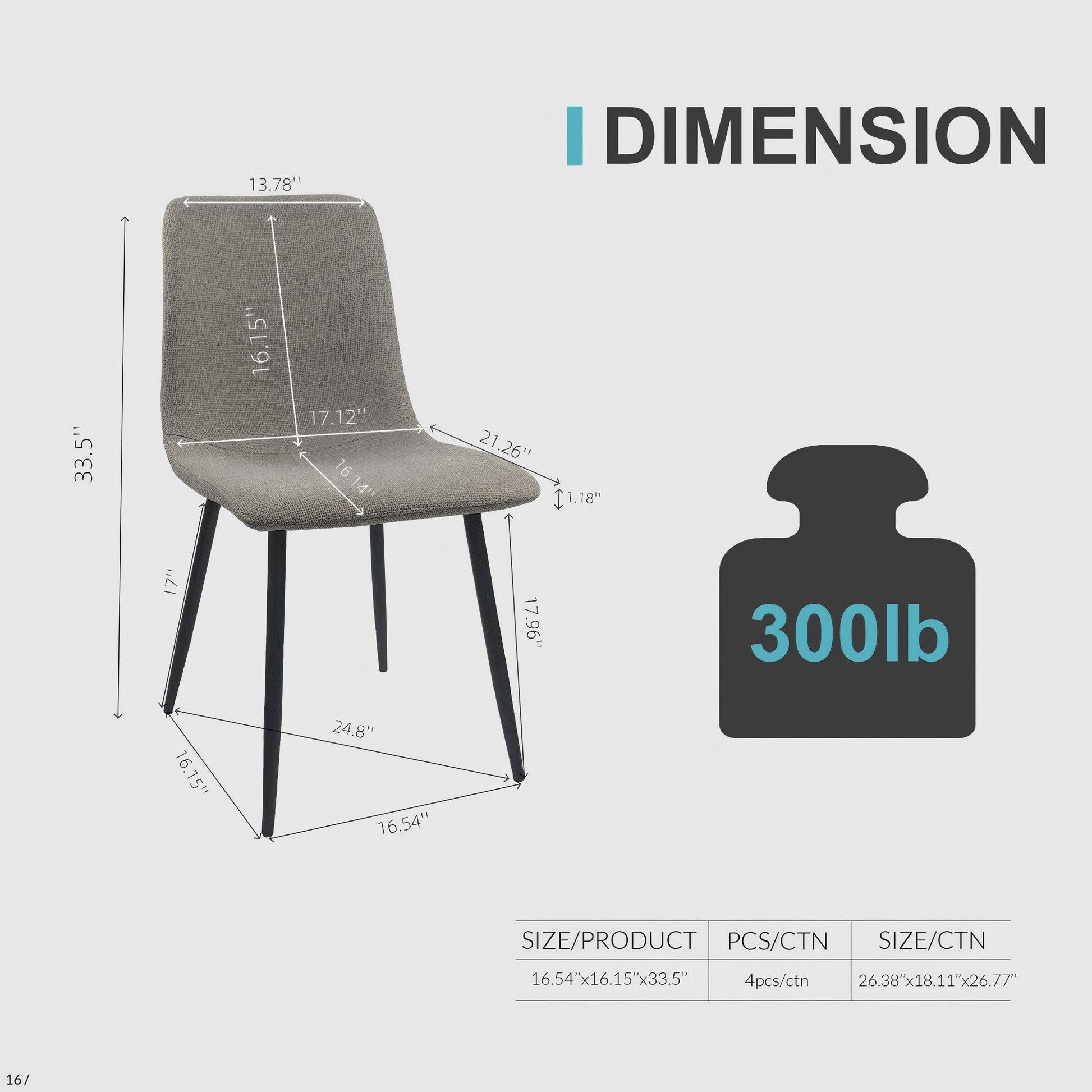 Modern Upholstered Dining Chairs (Set of 4) With Linen Cushion Seat And Sturdy Metal Legs - Light Gray