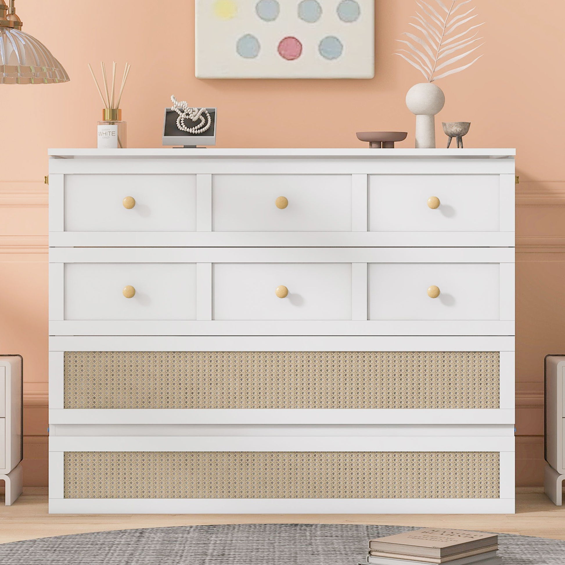 - Elegant Aesthetic: Features classic false drawers and stylish rattan patterns, available in three colors.