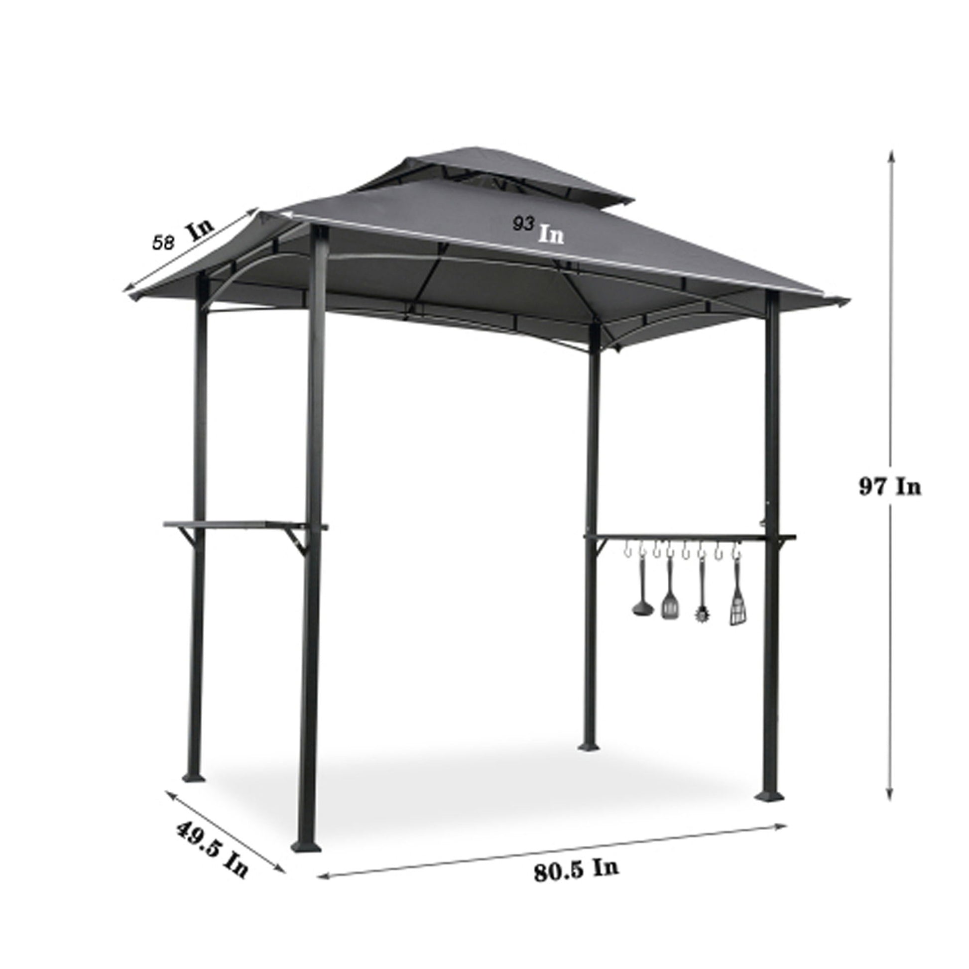 Outdoor Grill Gazebo With Double Tier Soft Top Canopy, Steel Frame, Bar Counters & Hook