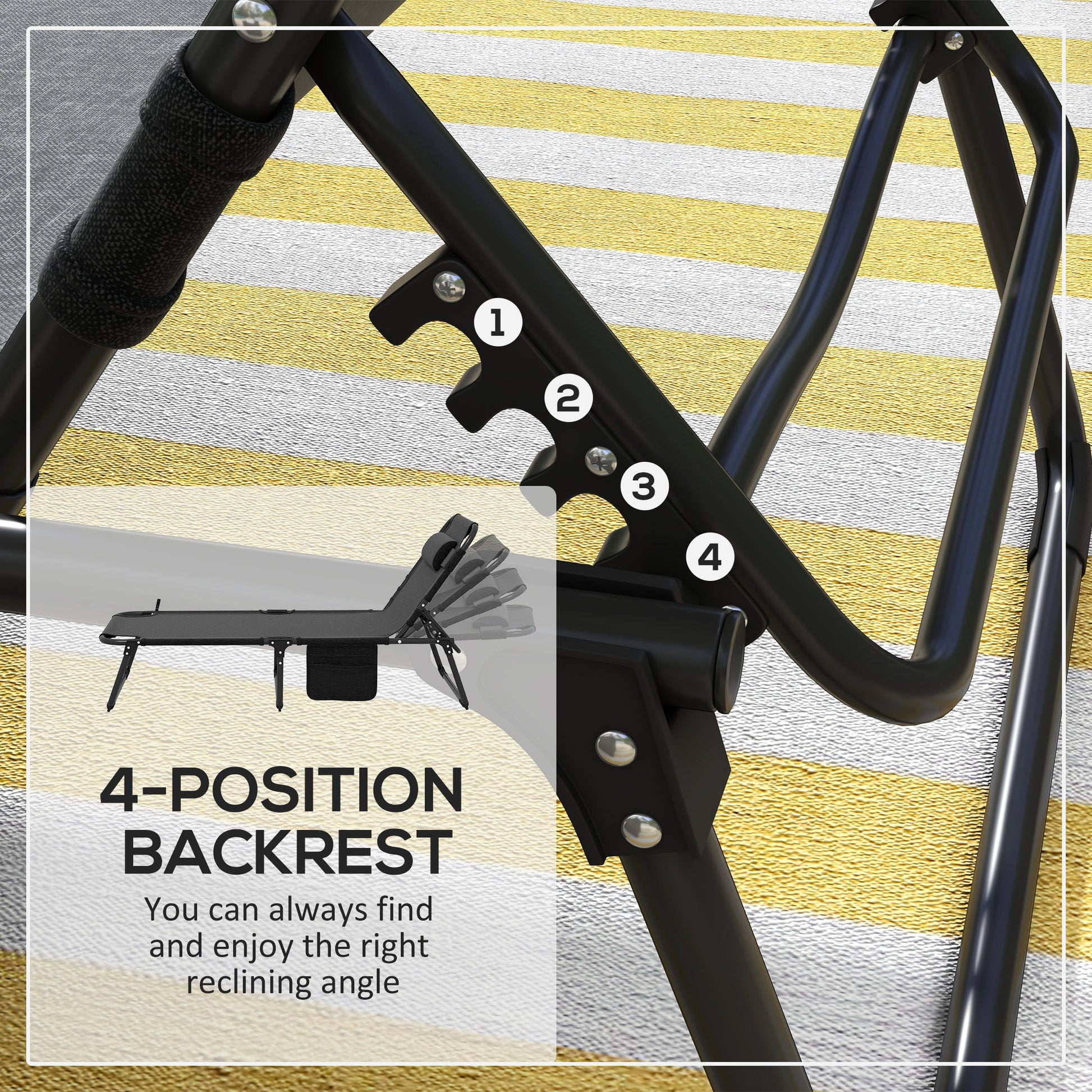 Outsunny - Outdoor Chaise, Adjustable Folding Chaise Lounge With 4-Position Backrest, Magazine Pocket, Removable Head Pillow, Sun Bathing Lounger Chair For Patio, Beach - Gray