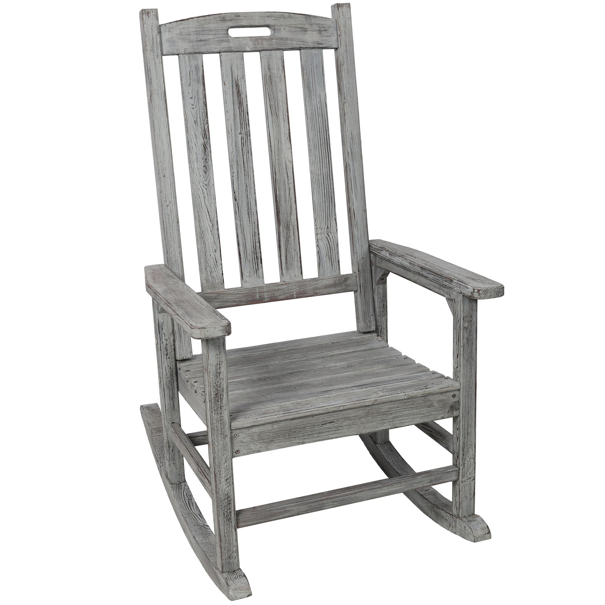 Wooden Oversized Porch Rocker Chair With Wide Seat And Tall Backrest, High Back Smooth Rocking Chairs For Outdoor & Indoor - Light Gray