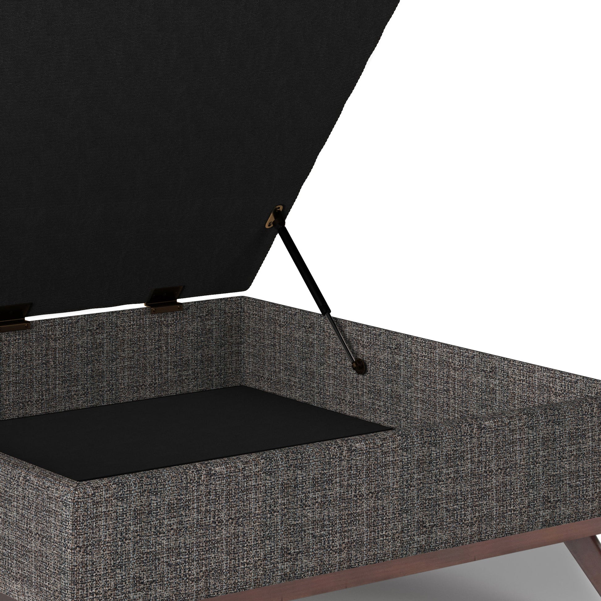 - Features a hydraulic lift up lid that opens to a large interior storage space and child safety hinge