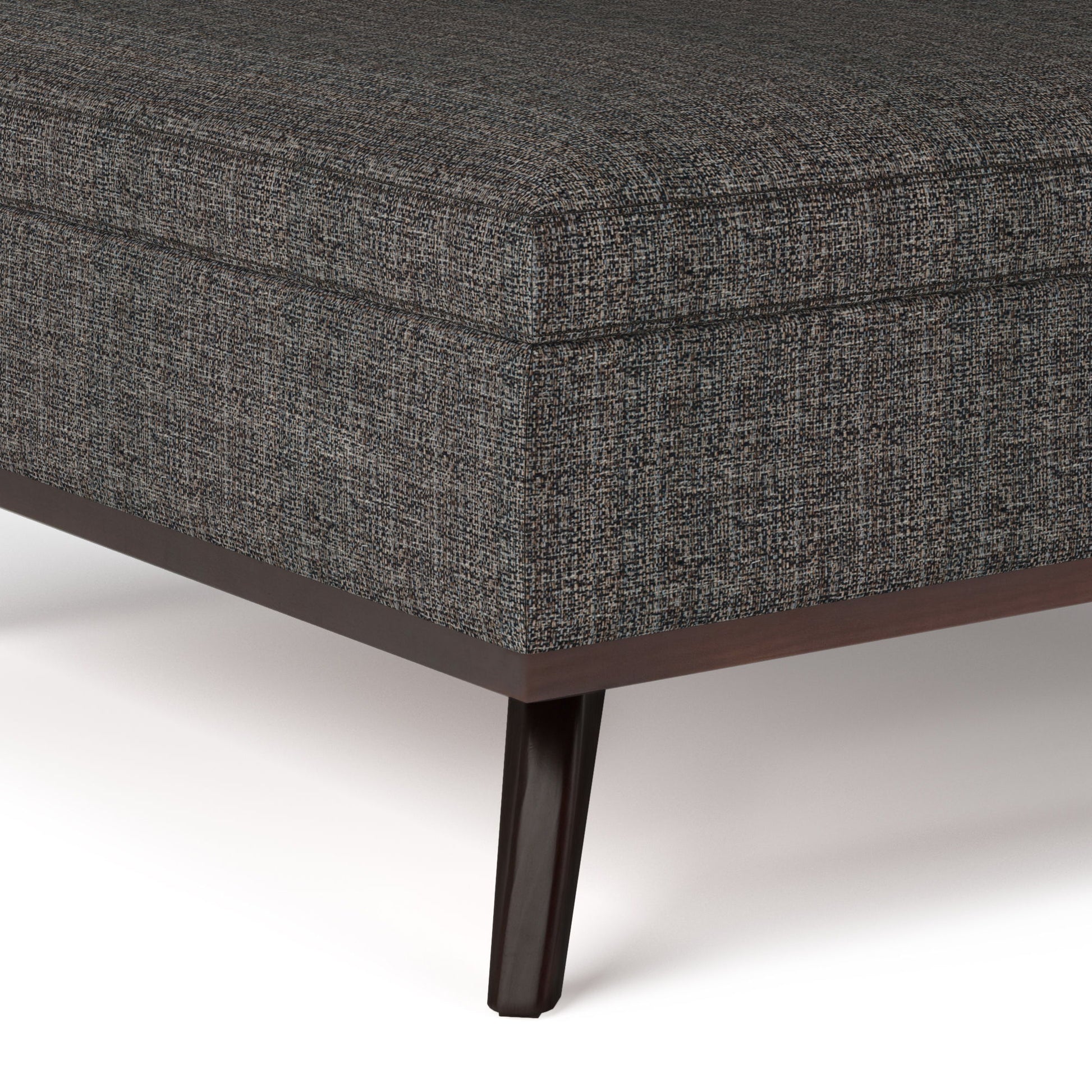 - Mid Century design includes solid wood framed ottoman base