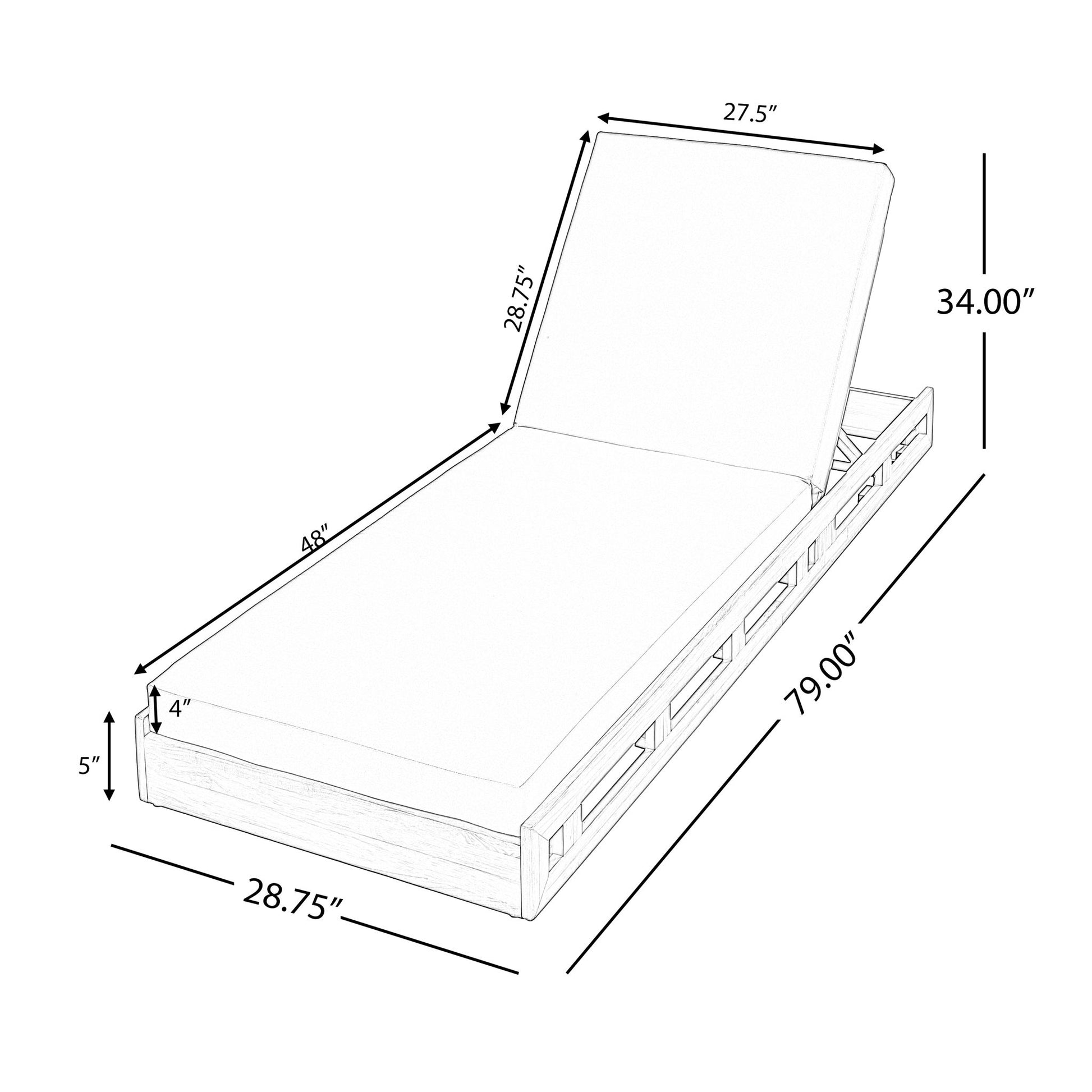 - Dimensions: Chaise measures 79"L × 28.75"W × 34"H with a 27.5" foldable section; cushion is 27.25"W × 76.25"L × 4"H.