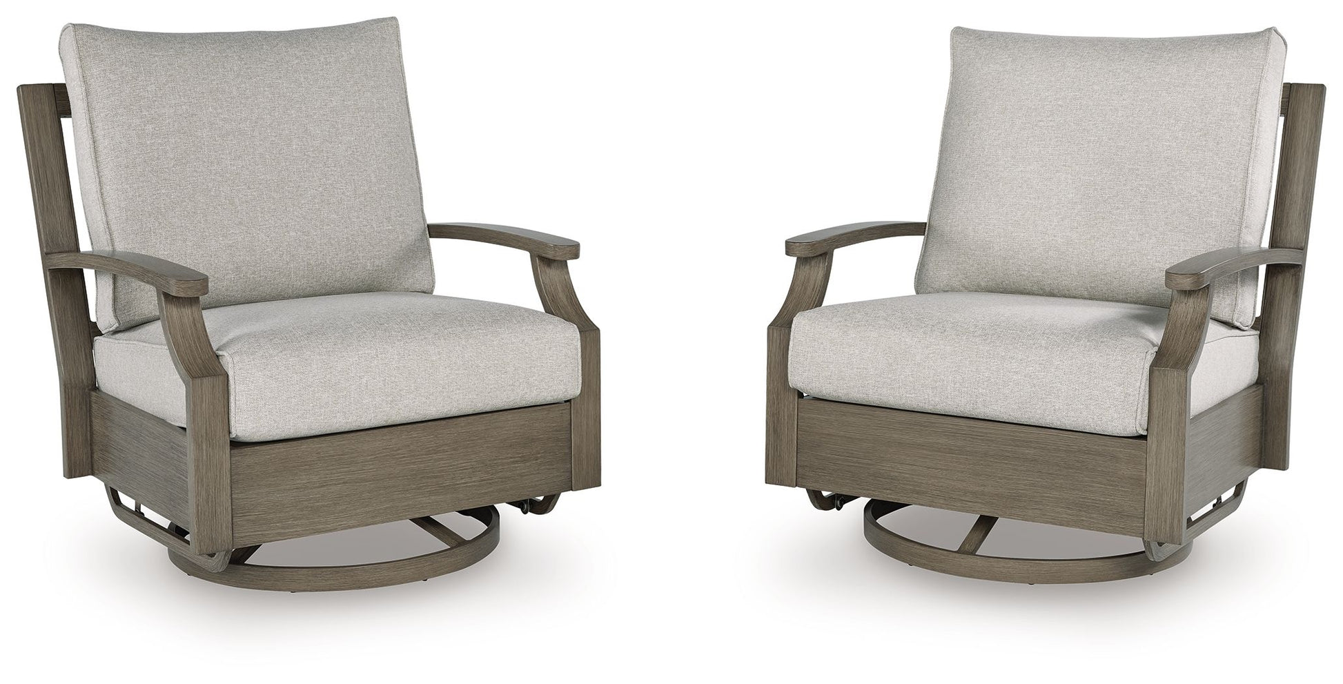Experience the perfect combination of durability and style with this outdoor swivel glider chair. Enhanced by sumptuously soft cushions and throw pillows wrapped in high-performing, low-maintenance Nuvella+™ fabric, it's designed to provide you with years of enjoyment. This delightful addition to your outdoor space creates an oasis where comfort and beauty thrive.