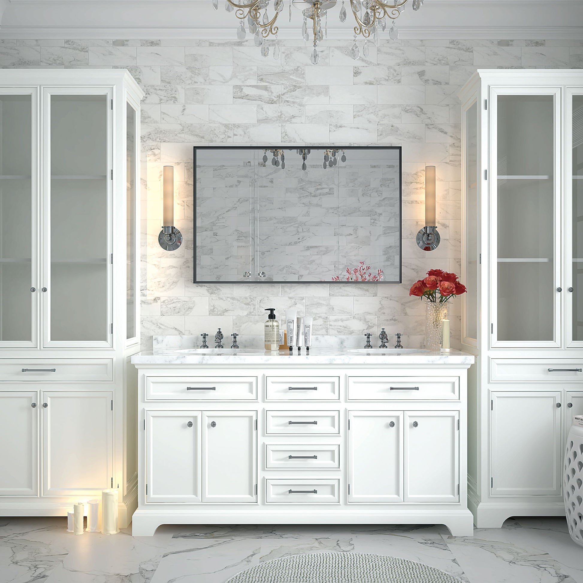 48X30" Bathroom Mirrors For Wall Wall Mounted Hanging Plates Mirror Farmhouse Mirror Modern Metal Framed Rectangular Mirror, Decorative Square Corner Mirror (Horizontal & Vertical) - Glossy Black