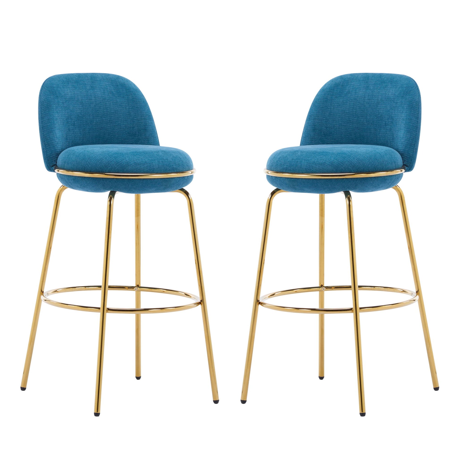 Rio Claro - Indoor Metal Upholstered Barstool Upholstery (Set of 2) - Gold / Blue