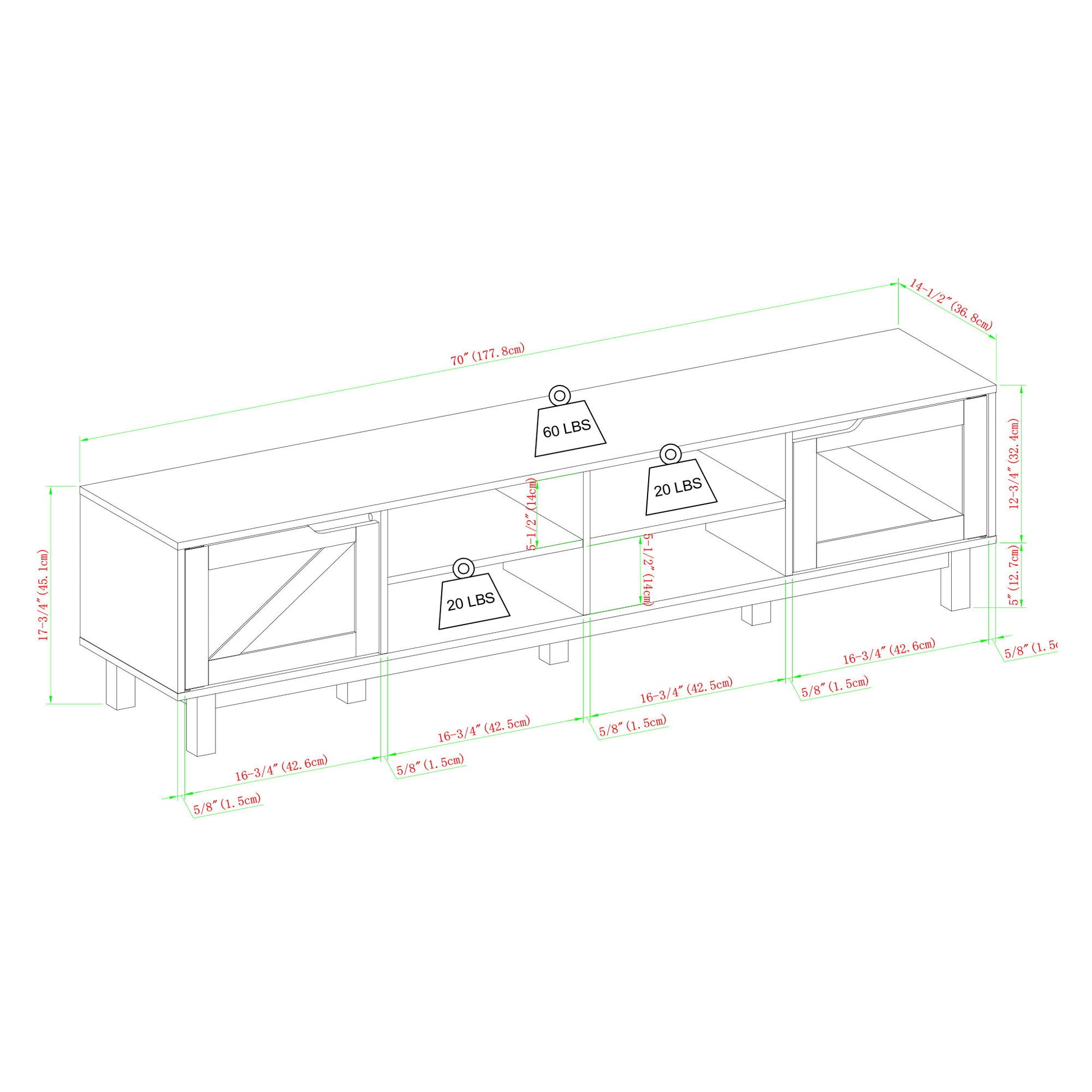 70.0"W x 14.5"D x 17.75"H - 70.0 lb