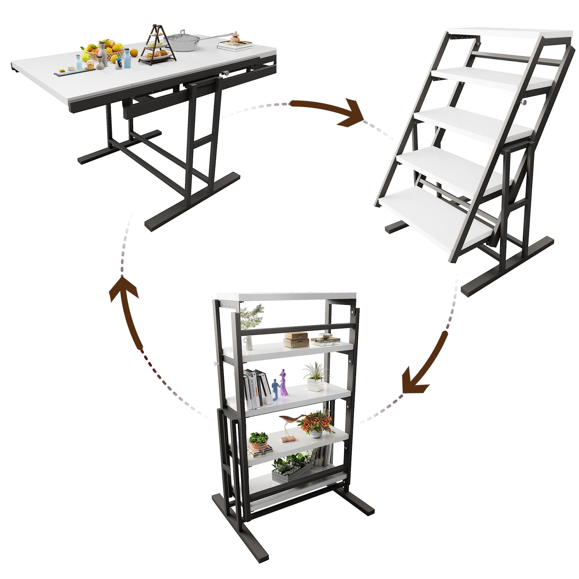 - Convertibility at its Finest: Effortlessly switch between table and shelf functions.