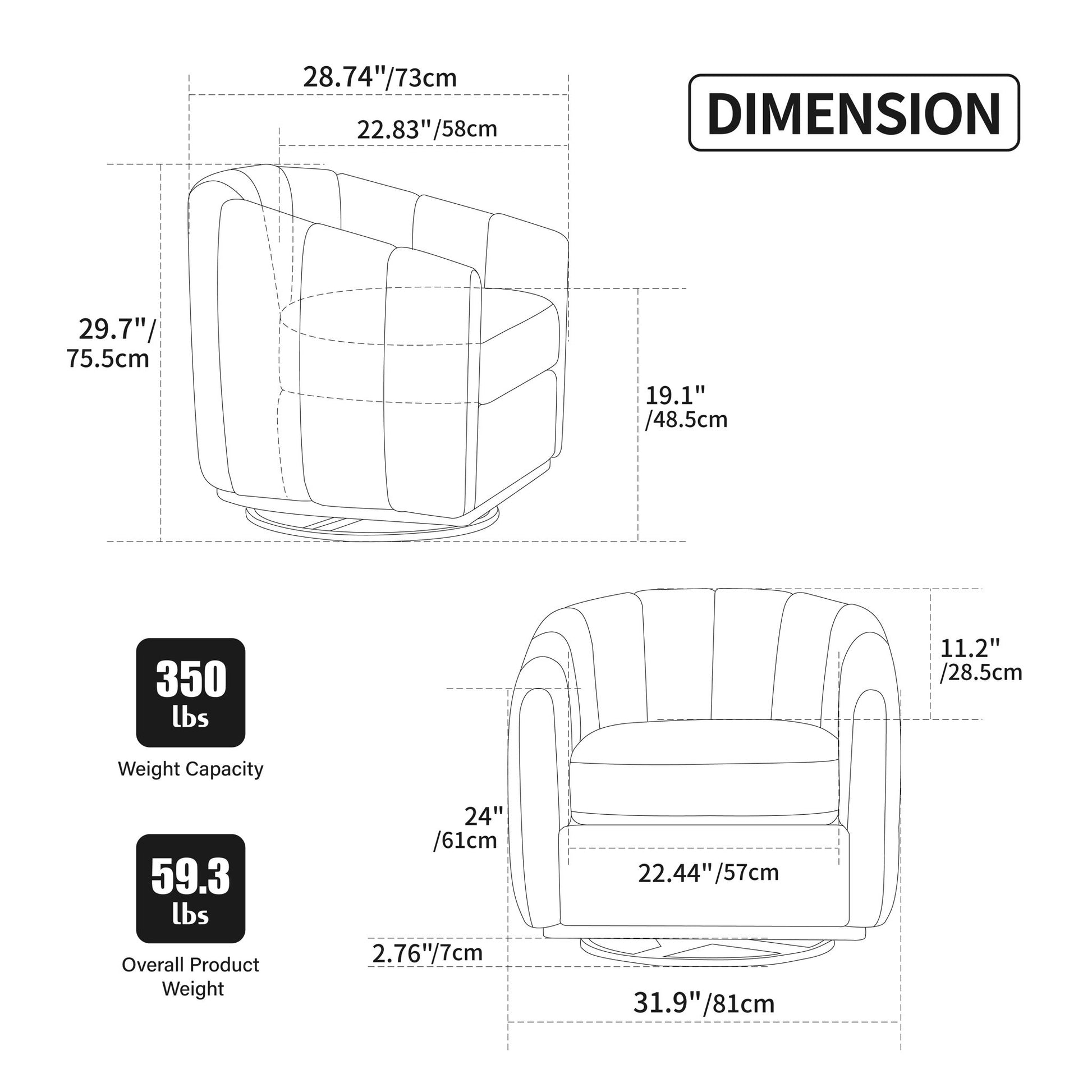 - 360° Swivel: Fully rotatable seat allows effortless repositioning for optimal viewing or conversation.